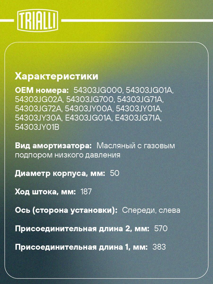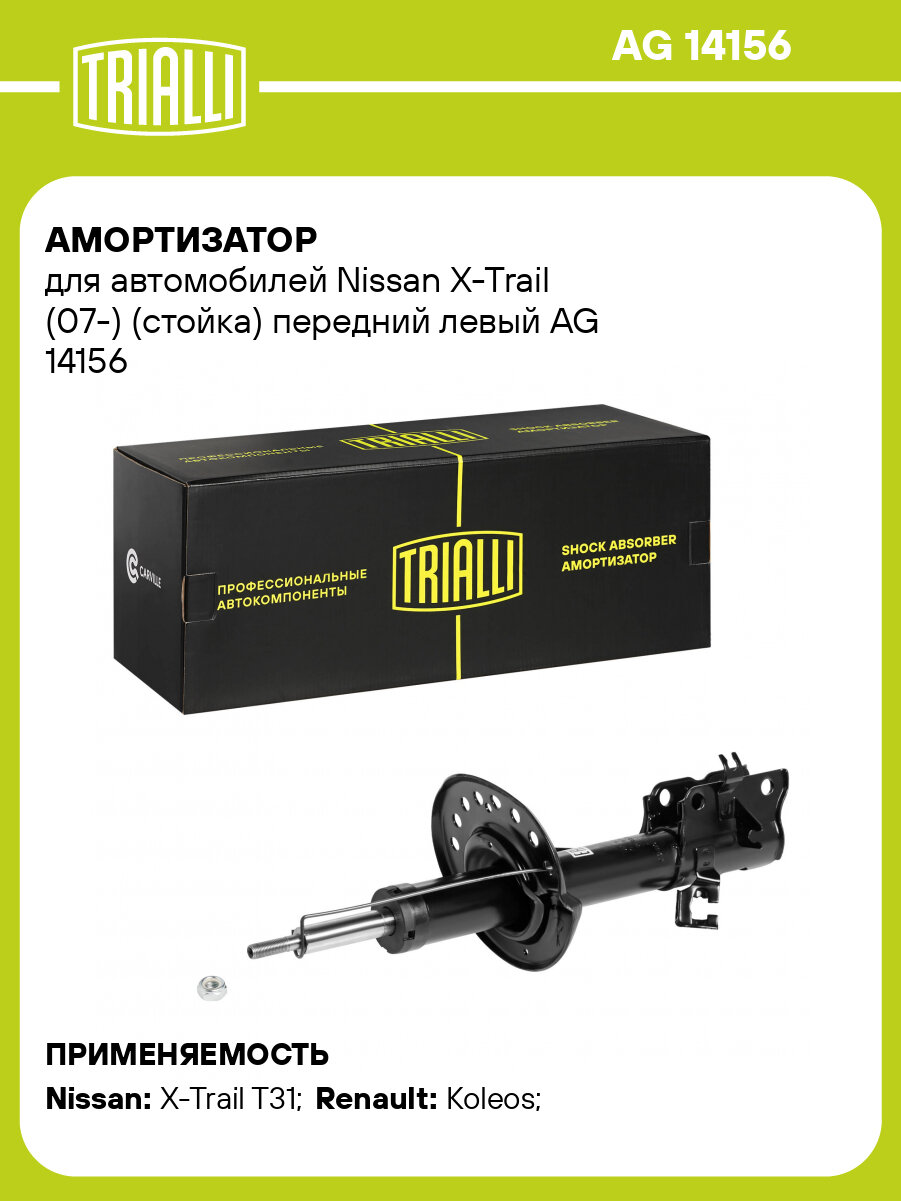 Амортизатор передний левый для Nissan X-Trail (07-) газомасляный TRIALLI AG 14156: сравнение цен, характеристики, фото, актуальное наличие и цены.