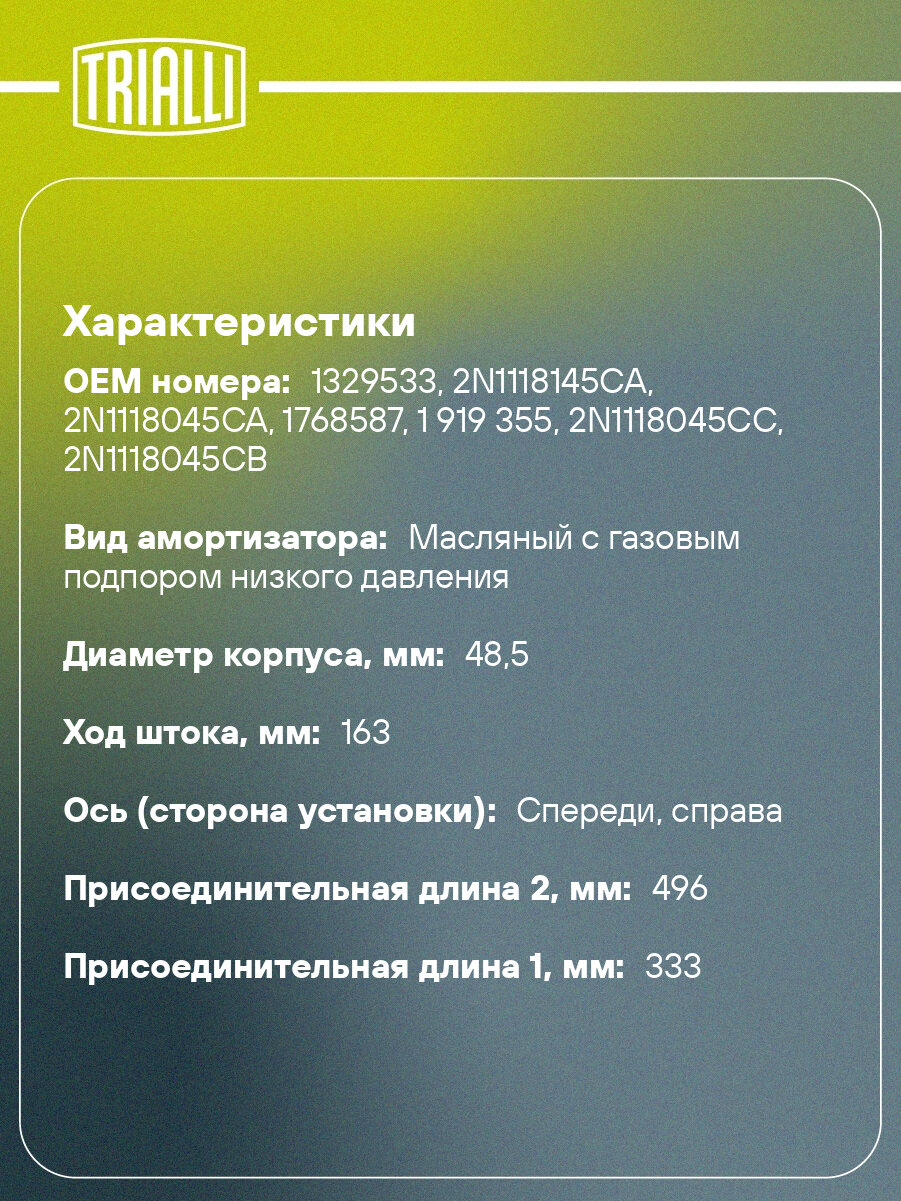 Амортизатор передний правый для Ford Fusion (02-) газомасляный TRIALLI AG 10380: сравнение цен, характеристики, фото, актуальное наличие и цены.