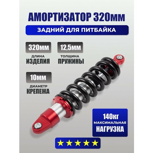 Амортизатор центральный задний на питбайк L 320 мм d - 10 мм красный - это высококачественный продукт от MotoLand, который предназначен для обеспечения комфортной и безопасной езды на питбайке.
