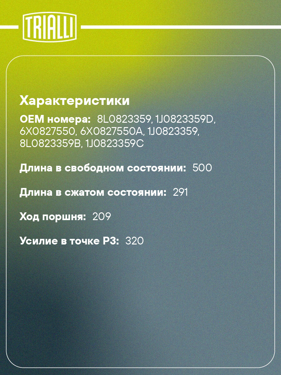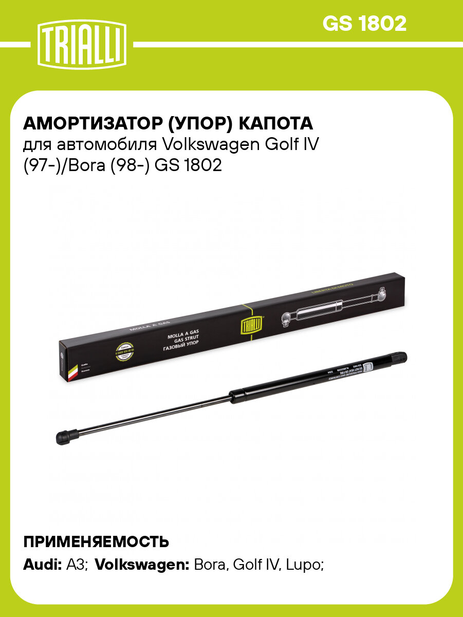 Амортизатор (упор) капота для автомобиля Volkswagen Golf IV (97-)/Bora (98-) GS 1802 TRIALLI: сравнение цен, характеристики, фото, актуальное наличие и цены.