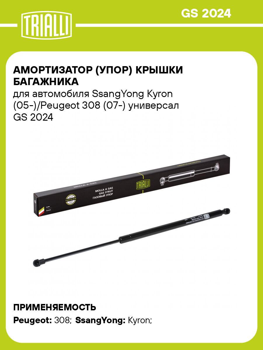 Амортизатор (упор) крышки багажника для автомобиля SsangYong Kyron (05-)/Peugeot 308 (07-) универсал GS 2024 TRIALLI: сравнение цен, характеристики, фото, актуальное наличие и цены.