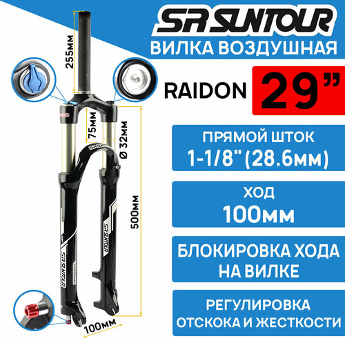 Купить Амортизационная вилка Suntour SF16-RAIDON-XC LOR DS 29″ шток 1-1/8 стальной, ход 100 мм, под эксцентрик, черная с доставкой по всей России.