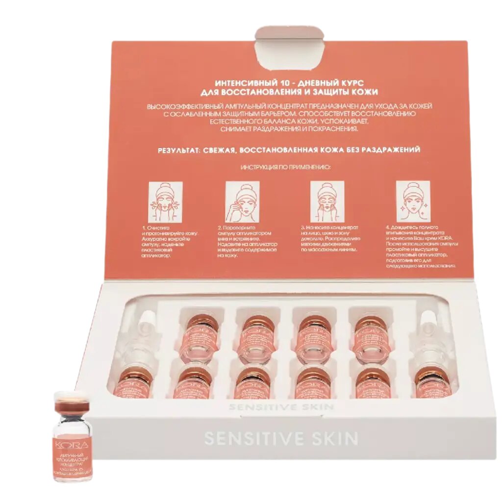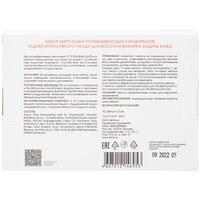 | Способ применения | нанесите 1 ампулу на очищенную кожу лица, шеи и декольте, равномерно распределите мягкими массажными движениями, дождитесь полного впитывания концентрата. Каждый день 1 новая ампула. Можно использовать 1 целую ампулу утром или вечером, либо половину ампулы утром и половину вечером. Открытую ампулу использовать строго в течение 24 часов |