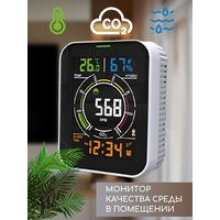 Купить Анализатор качества воздуха, 5в1, CO2/влажность/температура, питание от АКБ/USB, будильник с доставкой по всей России.