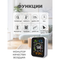 Анализатор качества воздуха, 5в1, CO2/влажность/температура, питание от АКБ/USB, будильник: сравнение цен, характеристики, фото, актуальное наличие и цены.