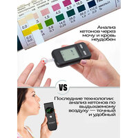 Точность и надежность: Благодаря продвинутым полупроводниковым сенсорам анализатор точно измеряет уровень ацетона в выдыхаемом воздухе, обеспечивая достоверные и стабильные результаты. Это надежный инструмент для контроля состояния кетоза, идеально подходящий для тех, кто придерживается кето-диеты.