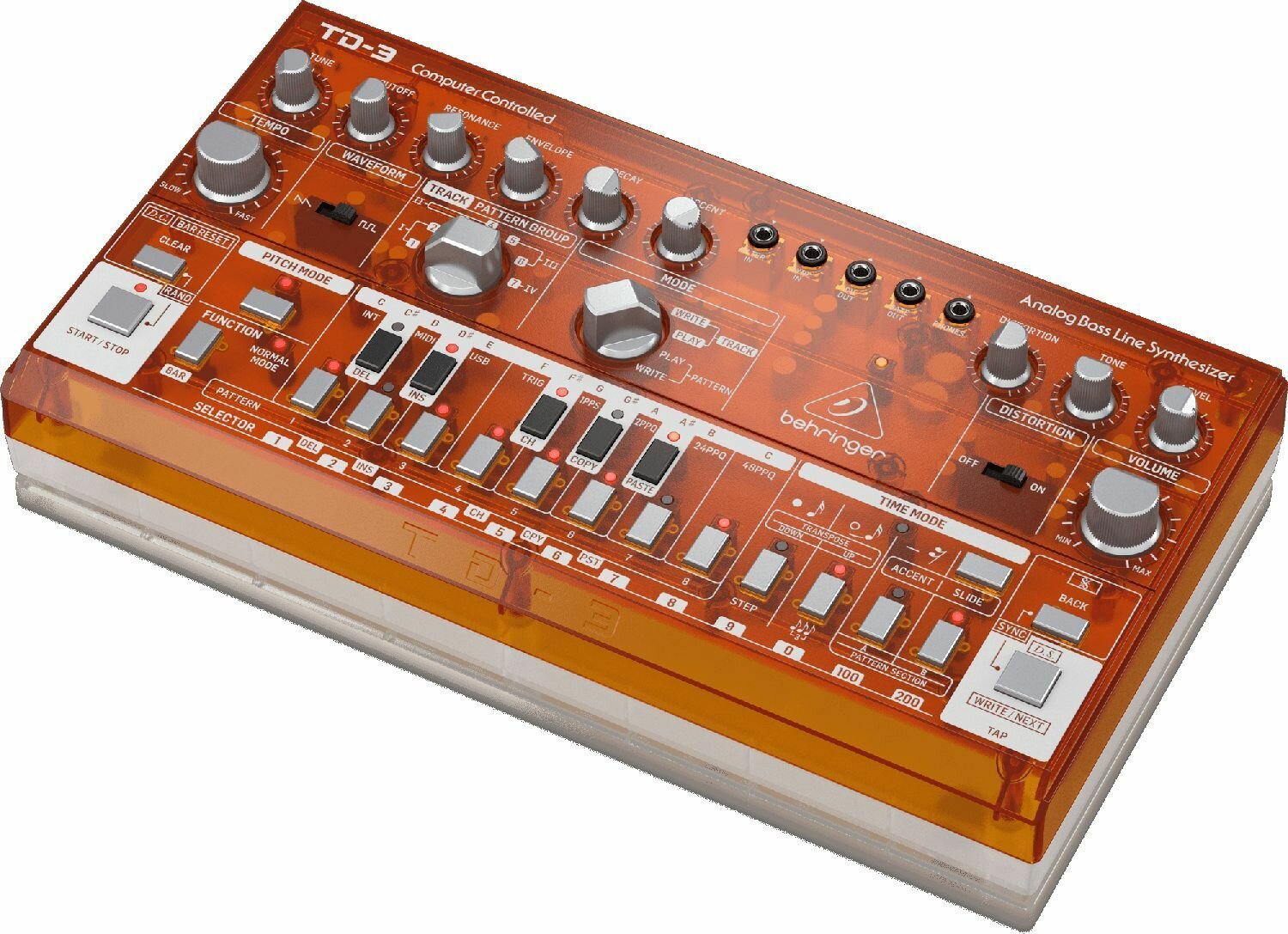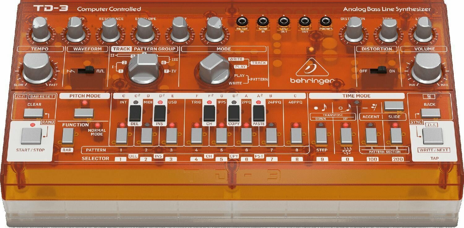 | Дополнительная информация | клон классического басового синтезатора Roland TB-303; функция Polychain позволяет объединить до 16 голосов в единую цепь, звук генерируется с помощью тракта, который состоит из VCO-осциллятора и обрабатывается VCF-фильтром, VCO воспроизводит волны sawtooth и square, фильтр снабжен регуляцией параметров resonance, decay и accent, для создания скетчей и партий предусмотрен 16-шаговый секвенсор (7 дорожек, до 250 пользовательских паттернов на каждую); разъемы: MIDI I / O, USB-MIDI, выход CV, выход Gate Out, разъем для наушников 3,5 мм |