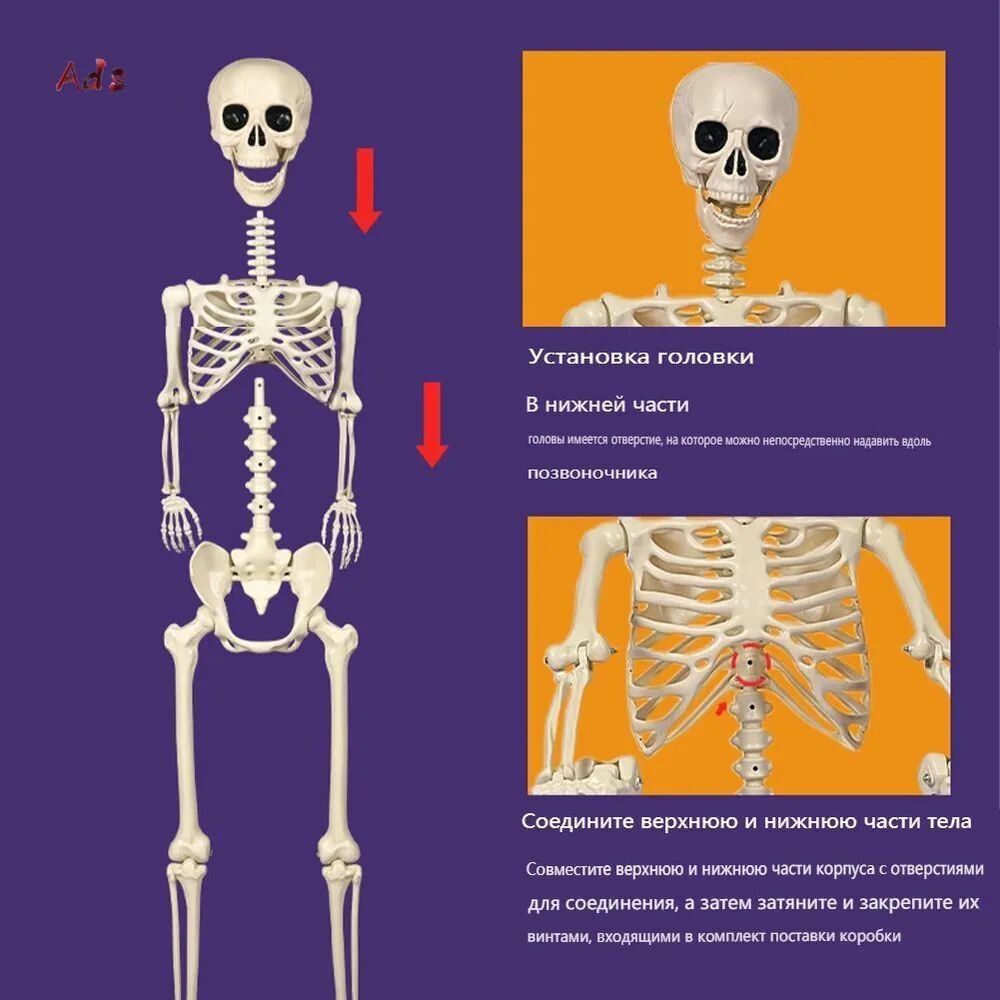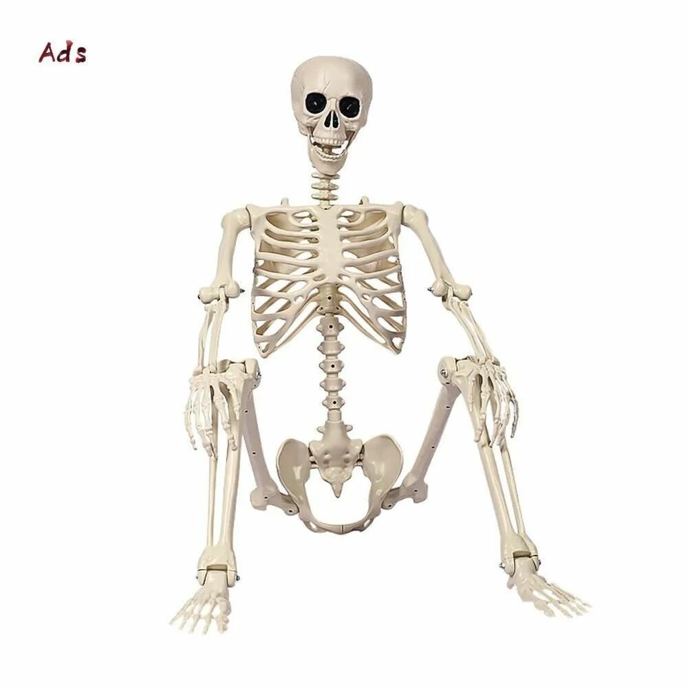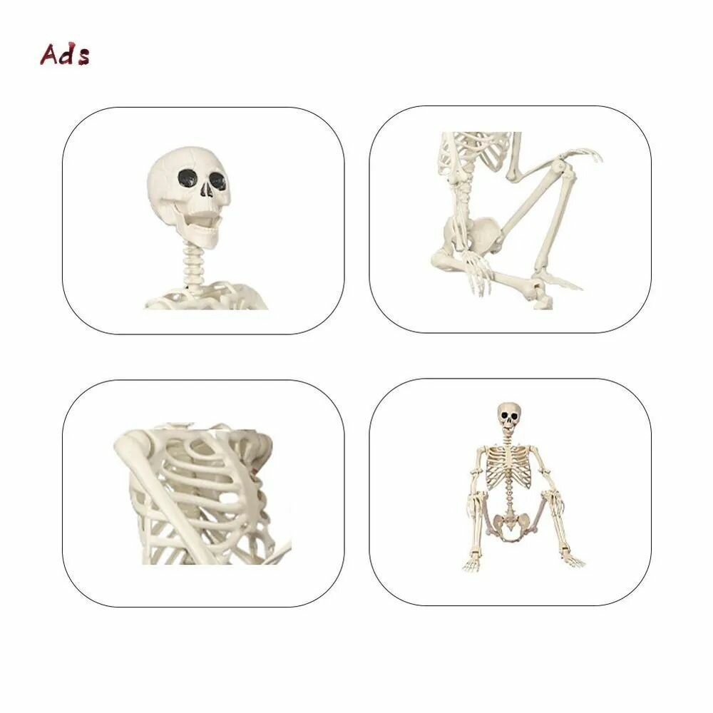 -- Регулируемые суставы: Благодаря подвижным суставам челюсть, плечи, локти, запястья, бедра, колени и лодыжки этого скелета могут принимать различные положения, добавляя реалистичности вашему костюму на Хэллоуин.