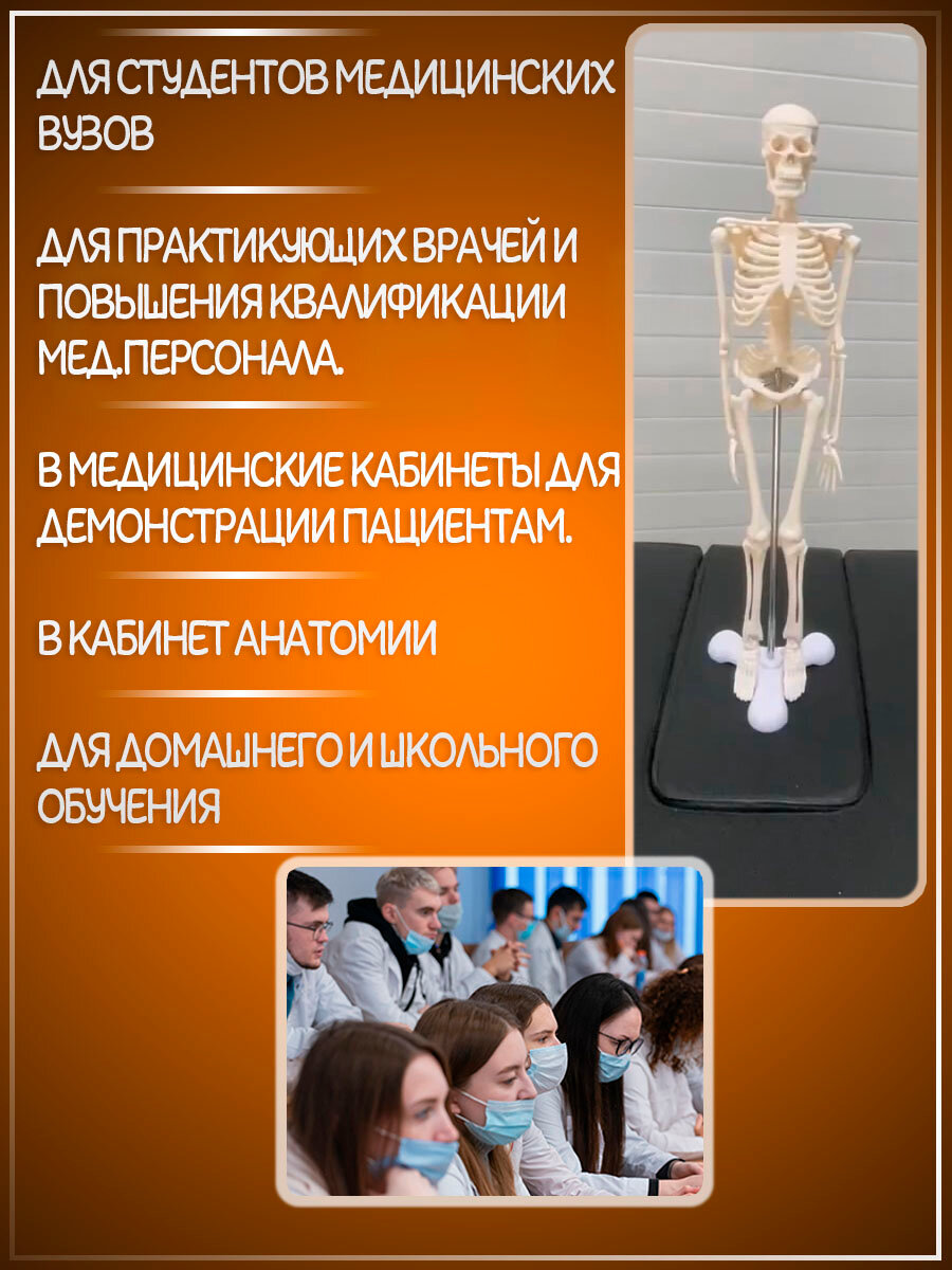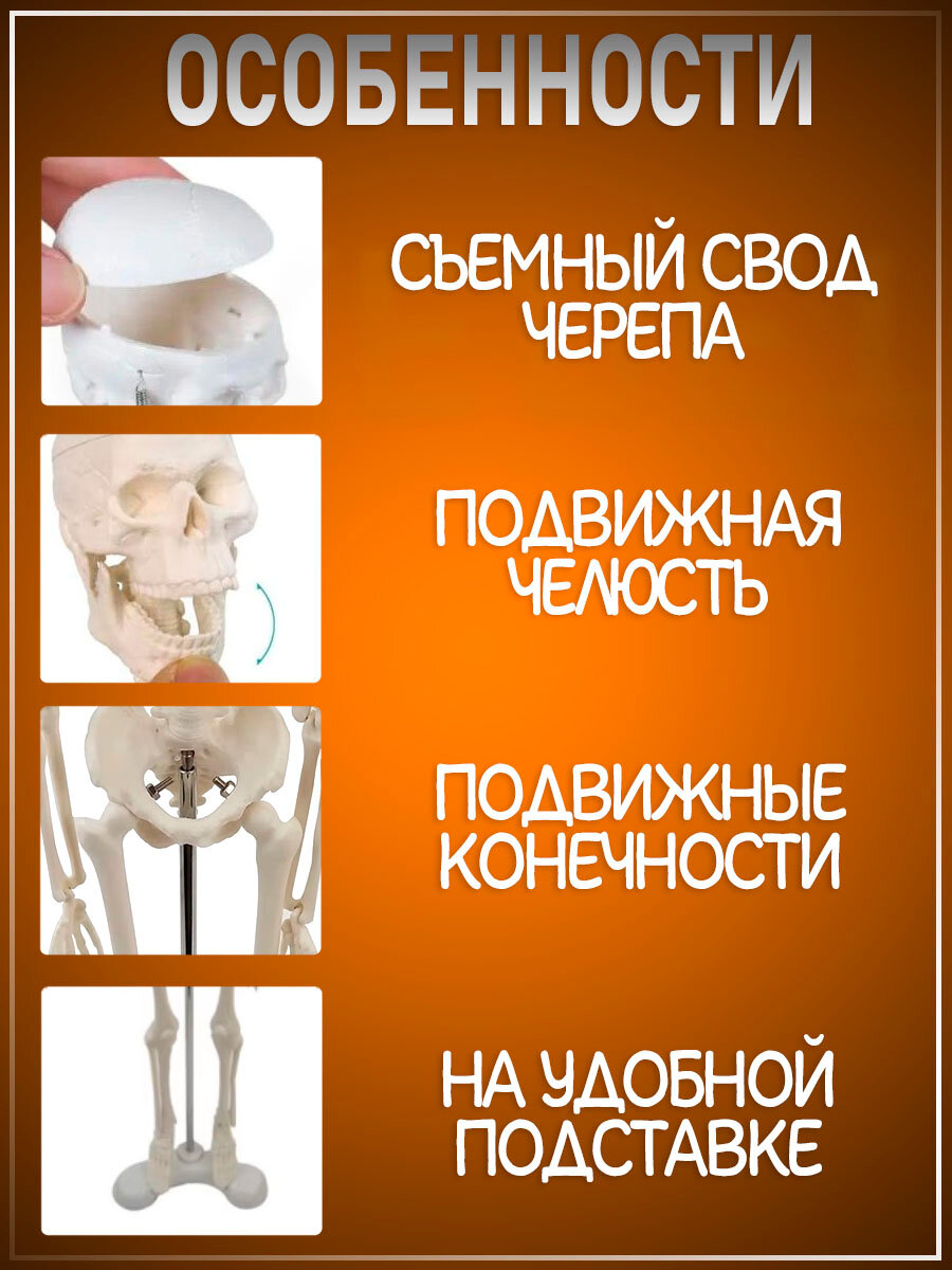 Этот скелет для опытов прививает интерес к анатомии и биологии, побуждает к углубленному изучению науки и практическому применению знаний. Модель скелета человека станет отличным подарком для студентов медицинских вузов, преподавателей и всех, кто увлекается наукой о человеке.