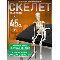 Анатомическая модель скелета человека со стойкой, высотой 45 см, идеально подходит для изучения структуры человеческого тела. Эта настольная мини модель скелета является незаменимым изделием для демонстрации на уроках биологии, анатомии и медицинских курсах, а также в качестве наглядного пособия для студентов и преподавателей.