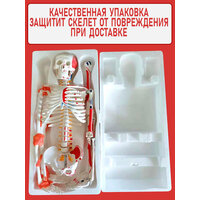 Макет скелета тщательно разработан для использования в качестве демонстрационного материала в общеобразовательных школах, а также в средних и высших медицинских учебных заведениях. Анатомический скелет человека изготовлен из поливинилхлорида (ПВХ), что обеспечивает долговечность и легкость в уходе. Использование высококачественного пластика позволяет легко очищать модель, сверлить, окрашивать и шлифовать её при необходимости. Важно отметить, что модель безопасна для использования, так как не содержит острых деталей, что делает её идеальной для работы с учащимися.