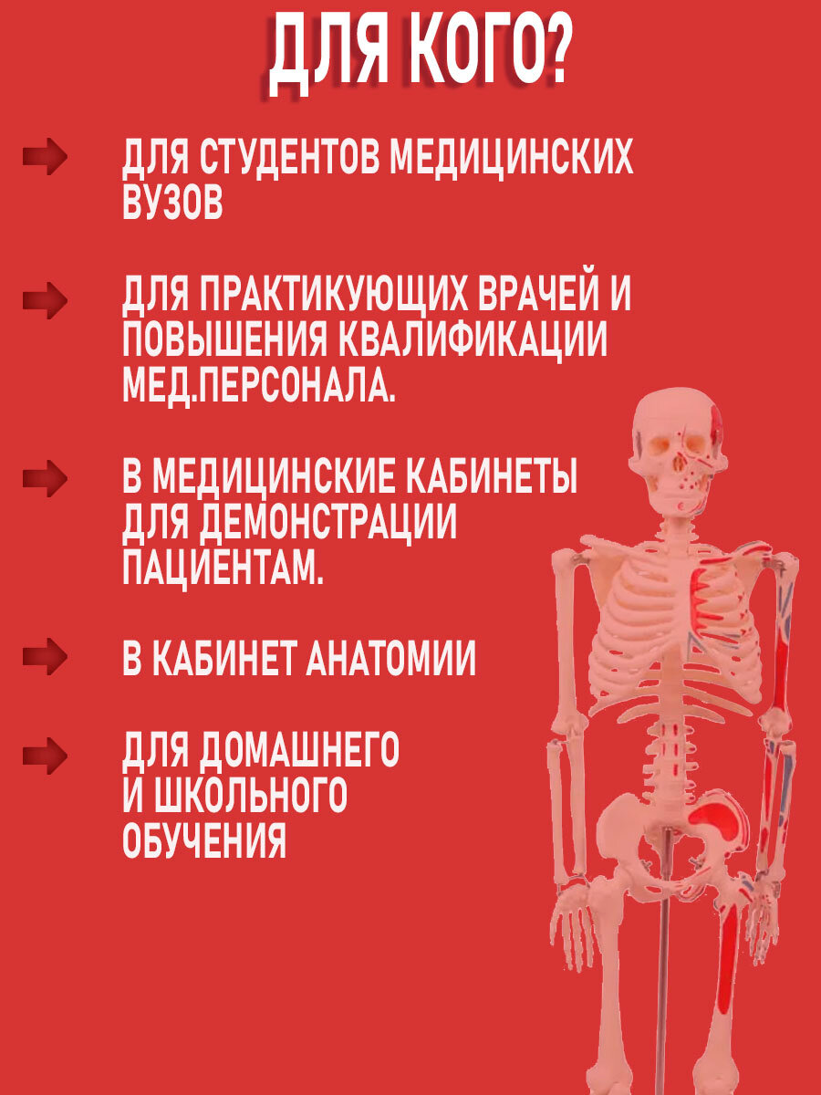 Макет скелета служит важным инструментом для изучения анатомии и физиологии человека, а также используется в образовательных учреждениях, медицинских учебных заведениях и научных исследованиях.