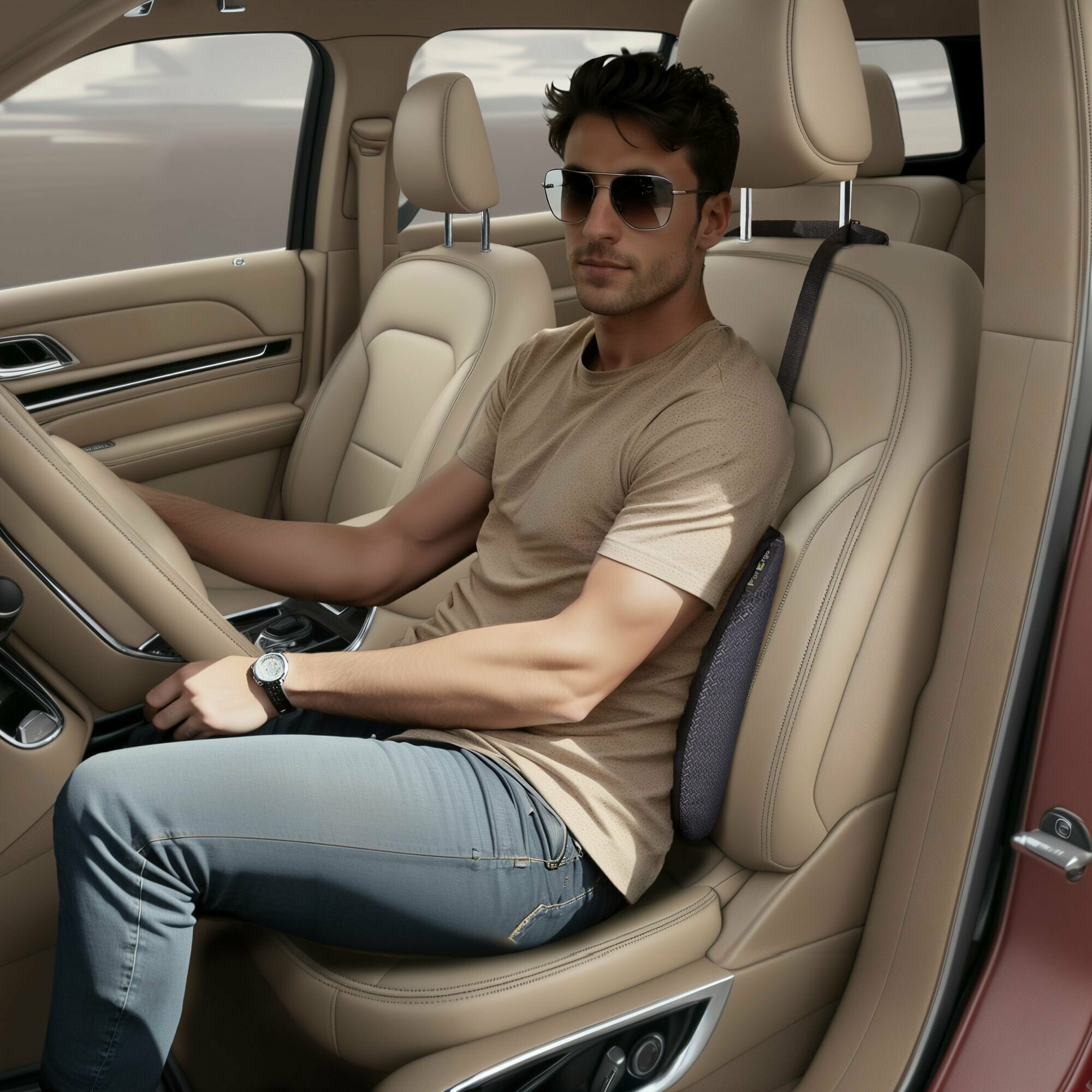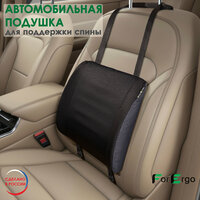 Эргономичная подушка под поясницу «ForErgo» для автомобилистов поддерживает спину и поясницу в физиологически правильном положении в автомобильном кресле. Прекрасно подходит водителям, таксистам и пассажирам, которые проводят много времени в автомобильных путешествиях. Поясничный упор разгрузит мышцы спины и будет способствовать правильной осанке в положении сидя. Подушка для спины является отличной профилактикой остеохондроза, сколиоза, иного искривления, помогает избежать болей в поясничном отделе. В подушках из пенополиуретана используется плотный материал, который подстраивается под вашу форму спины, что обеспечивает комфорт в длительных поездках. Дополнительно, в поясничной поддержке предусмотрены ребра жёсткости, которые помогают сохранить форму на протяжении длительного использования. При постоянном использовании корректора осанки, мышцы спины не испытывают чрезмерное напряжение, человек за рулем меньше устает, его не отвлекают от дороги болевые ощущения в спине. Упор поясничный на сиденье отличный и полезный подарок для близкого человека или для себя. Автомобильная массажная подушка легко крепится к спинке кресла при помощи эластичной резинки и дополнительных регулируемых фиксаторов.