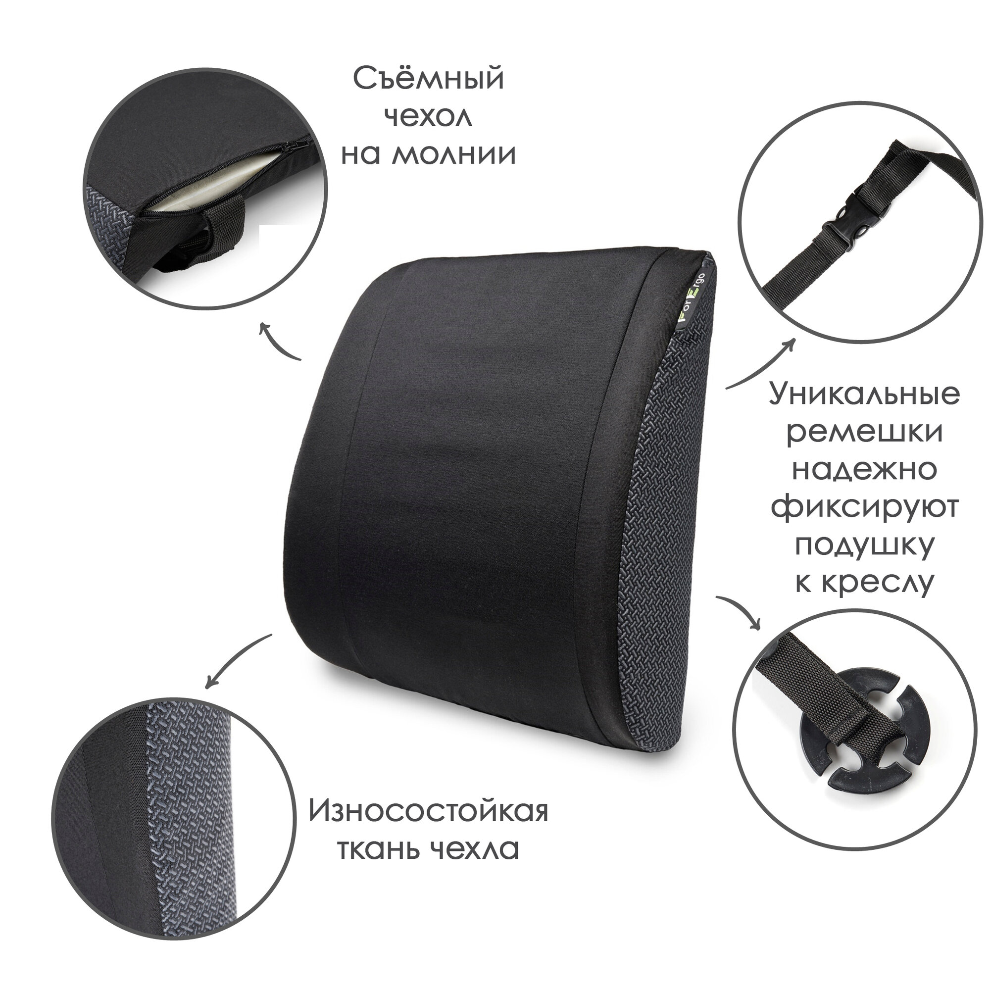 анатомическая, ортопедическая, с креплением, съемный чехол