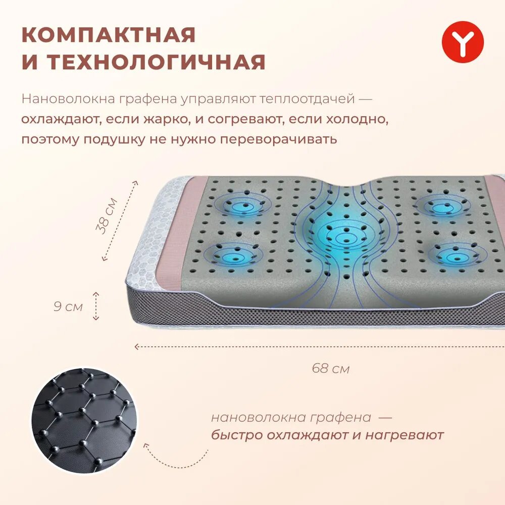 Благодаря нановолокнам графена, содержащимся в составе ткани, анатомическая подушка Yamaguchi будет самостоятельно управлять теплоотдачей, выступая в качестве своеобразного буфера обмена между телом человека и окружающей средой.