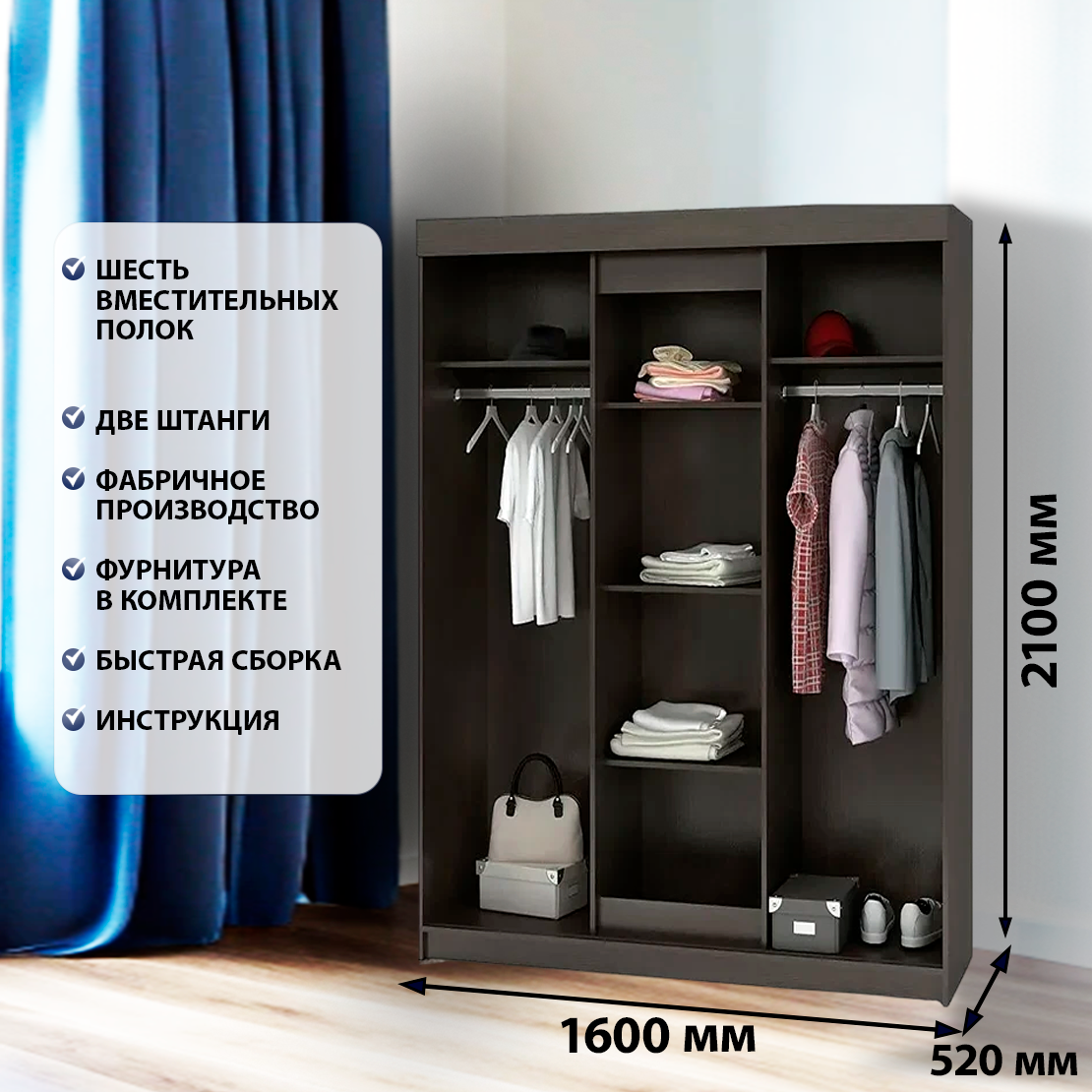 Купить Шкаф купе с зеркалом Фея (1600*2100*520 мм), в цвете венге/ дуб белфорд с доставкой по всей России. Шкаф купе с зеркалом Фея (1600*2100*520 мм), в цвете венге/ дуб белфорд: сравнение цен, характеристики, фото, актуальное наличие и цены.