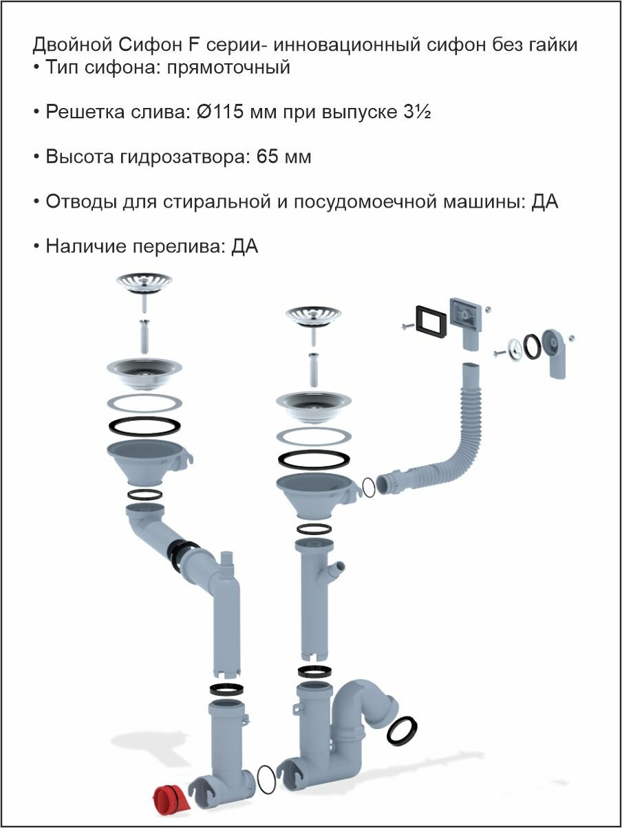 АНИ Cифон F серия 3 1/2*40 двойной, смещение с отводом для стиральной машины , гибким круглым и прямоугольным переливом (F7500S): сравнение цен, характеристики, фото, актуальное наличие и цены.