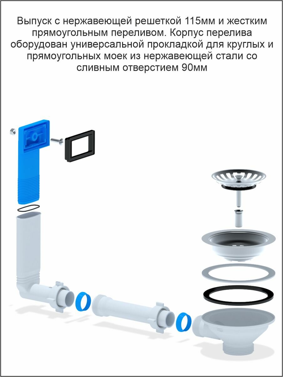 Купить АНИ Жесткий перелив для мойки 3 1/2″ с прямоугольным вертикальным корпусом (N305) с доставкой по всей России.