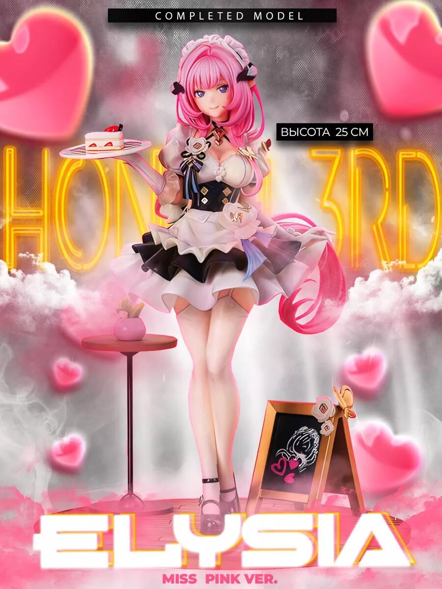 Аниме фигурка персонажа Elysia Miss Pink Ver. в аутфите прислуги из бесплатной трехмерной видеоигры в жанре ARPG - Honkai Impact 3rd (Houkai 3rd), выполненной с использованием графики сел-шейдинг, разработанной китайской компанией miHoYo. Элизия - член проекта MANTIS. Объединила участников проекта в группу Тринадцать пионеров / Thirteen Flame-Chasers, в которой занимала второе место по рейтингу. Превратила Золотой двор / Golden Courtyard в Элизиум — место, где пионеры смогут жить даже после своей смерти. Фигура создана с невероятной детализацией и вниманием к дизайну, является не только предметом коллекционирования, но и произведением искусства. Отличный способ выразить свою любовь к аниме и украсить интерьер. Статуэтка идеально подходит для демонстрации на полке, на рабочем столе или как элемент декора в комнате. Понравится как юным поклонникам, так и взрослым. Данное изделие можно подарить фанату манги, аниме, косплея, японской культуры, видеоигр, мифологии и любителю этой вселенной, чтобы он собрал всех любимых героев у себя дома. В комплект входит фигурка, высотой 24,5 см.