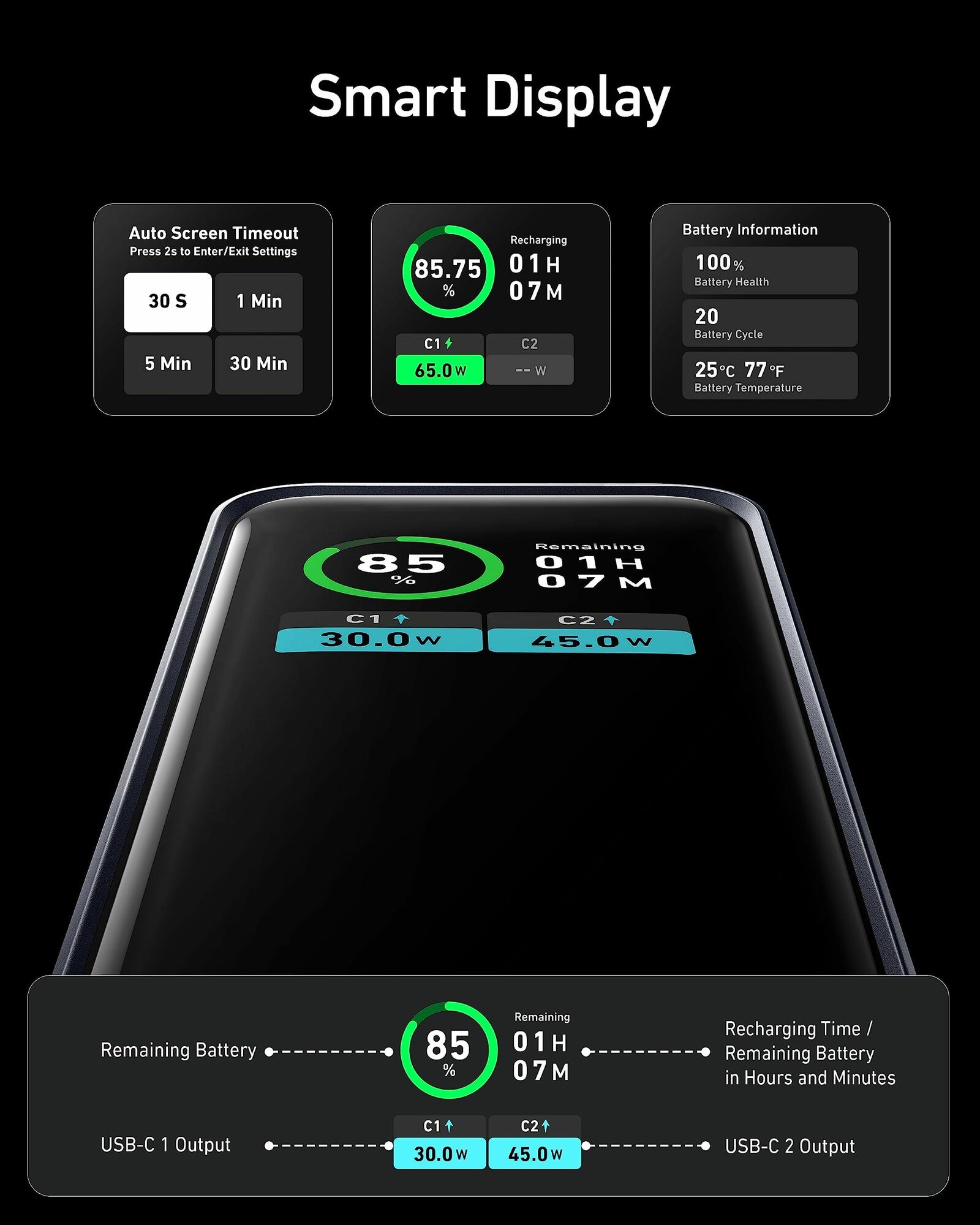 Anker Prime Power Bank, 12000mAh портативное зарядное устройство с выходом 130W, Smart Digital Display Charging Base, 100W Fast Charging с 4 портами: сравнение цен, характеристики, фото, актуальное наличие и цены.