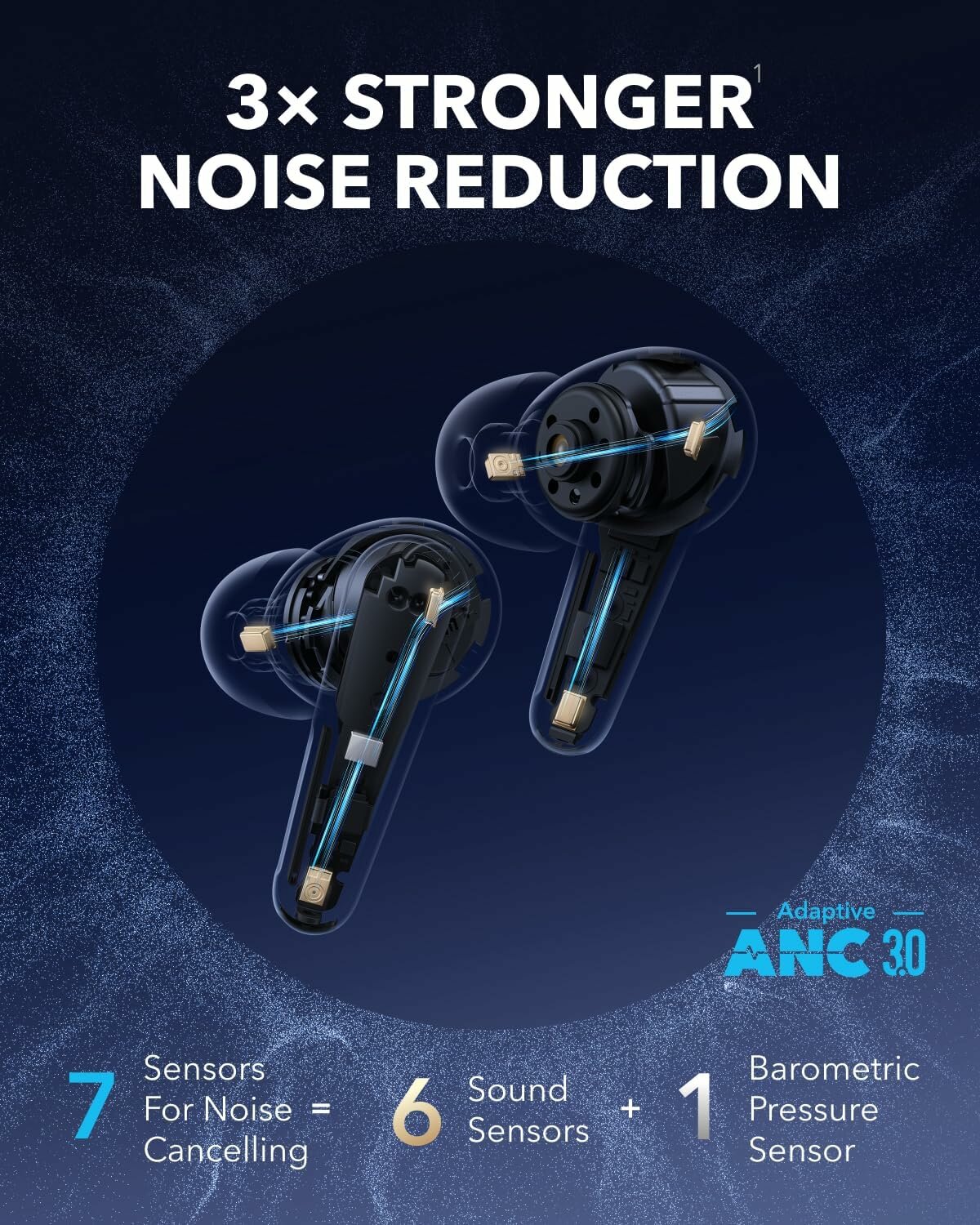 1. Основываясь на испытаниях, проведенных в Soundcore Lab, Liberty 4 Pro может снизить уровень шума до 12,2 дБ в диапазоне 600-700 Гц при тестировании с противоположной стороны наушников. Такое улучшение в три раза эффективнее при выключенном алгоритме адаптивной шумоподавления.| 2. Рассчитан на основе частоты повторной калибровки алгоритма ANC, которая составляет три раза в секунду, когда звук не воспроизводится.| 3. Он заряжается в два раза быстрее, чем Liberty 4 NC.| 4. LDAC обеспечивает передачу аудиоконтента с максимальной скоростью передачи данных 990 кбит/с, что передает в 3 раза больше данных по сравнению со стандартным кодексом SBC с битрейт 328 кбит/с.