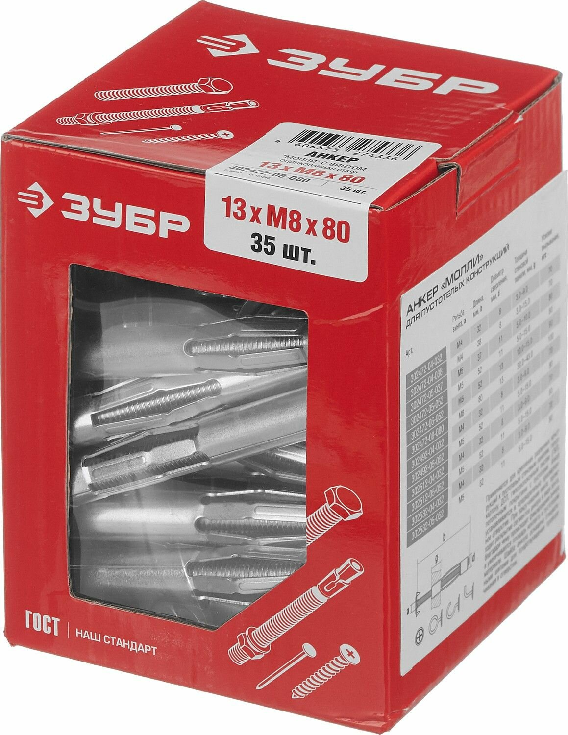Купить Анкер ЗУБР молли М8 х 80 х 13 мм, 35 шт, для пустотелых конструкций 302472-08-080 с доставкой по всей России. Анкер ЗУБР молли М8 х 80 х 13 мм, 35 шт, для пустотелых конструкций 302472-08-080: сравнение цен, характеристики, фото, актуальное наличие и цены.