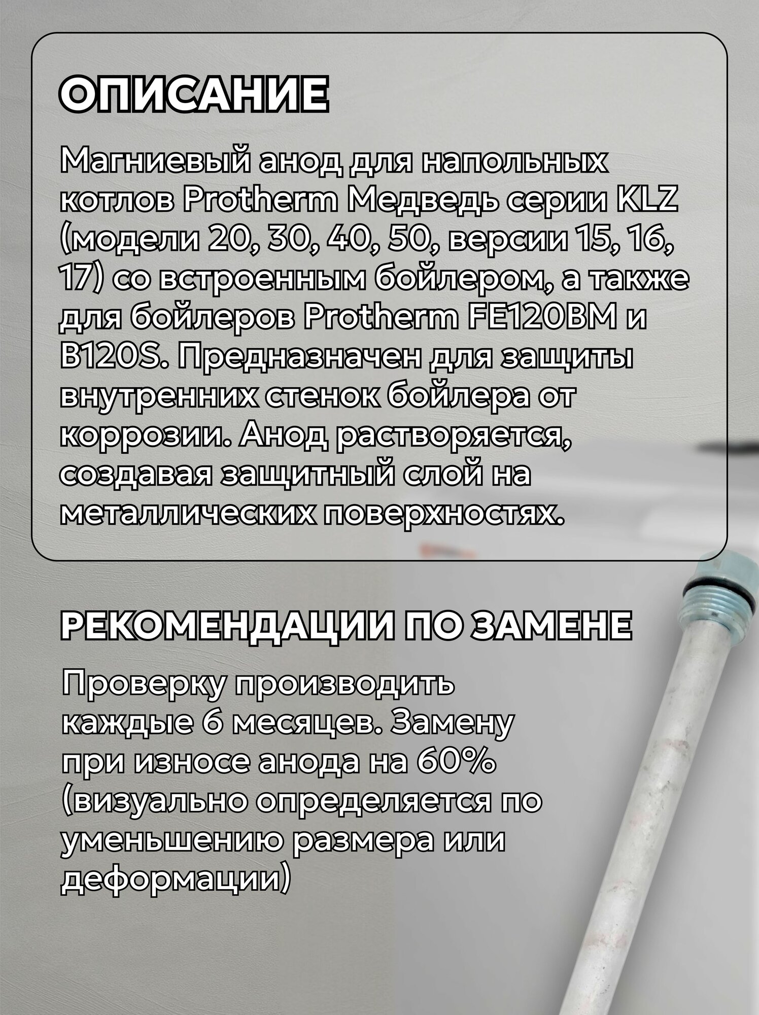 Купить Анод бойлера для Protherm klz 17-15 fe 120 bm, b 120 s 1″, защита от коррозии с доставкой по всей России.