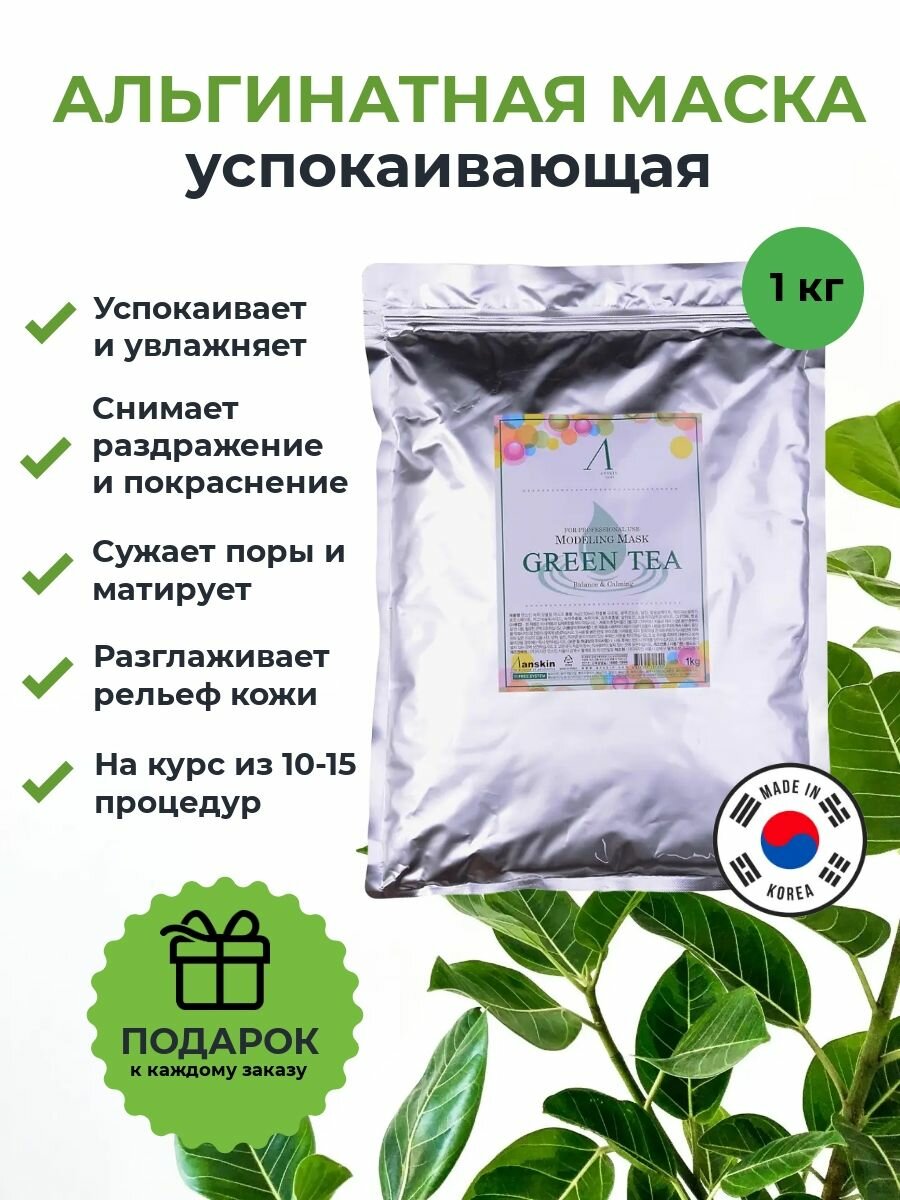 Anskin Успокаивающая профессиональная альгинатная маска с экстрактом зеленого чая для проблемной, чувствительной кожи Green Tea Modeling Mask, Корея, пакет 1кг (1000г): сравнение цен, характеристики, фото, актуальное наличие и цены.