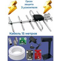 Антенна для цифрового ТВ с тремя усилителями и кабелем полный комплект.