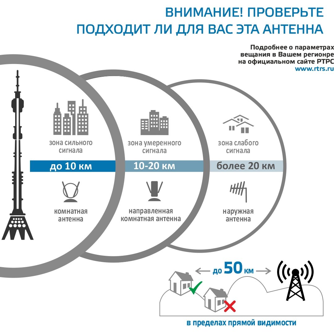 * Эффективность работы антенны зависит от места установки и расположения относительно ТВ-ретранслятора. Выполните настройку и поиск телевизионных каналов в соответствии с инструкцией телевизора (приёмника ЦТВ). Во время настройки выберите такое положение антенны, при котором уровень и качество сигнала будут максимальными в течение продолжительного времени. Если сигнал значительно изменяется, то необходимо проверить направление на ТВ-ретранслятор и высоту установки антенны. Информацию о расположении ретрансляторов и частотах каналов вещания можно получить на официальной интернет-странице «Российской телевизионной и радиовещательной сети» (ртрс).