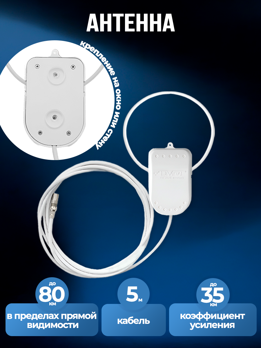 Комплект для приёма цифрового ТВ: антенна Волжанка с кабелем 5 м + приставка с дисплеем. Идеальное решение для приёма эфирного цифрового телевидения формата DVB-T2. Антенна обладает высоким коэффициентом усиления (до 35 дБ) и работает в диапазоне 470–860 МГц. Компактный корпус с присосками позволяет легко закрепить антенну на окне — это оптимальное место для уверенного приёма сигнала. Питание подаётся через приставку, либо при помощи инжектора питания (приобретается отдельно). Кабель длиной 5 м даёт свободу при размещении устройства. При необходимости его можно удлинить с помощью F-разъёмов. Приставка с дисплеем обеспечивает простой и удобный контроль, быстро находит каналы и подходит для большинства современных телевизоров. Этот комплект сочетает в себе мощность, компактность и простоту подключения — всё, что нужно для уверенного приёма цифрового ТВ.
