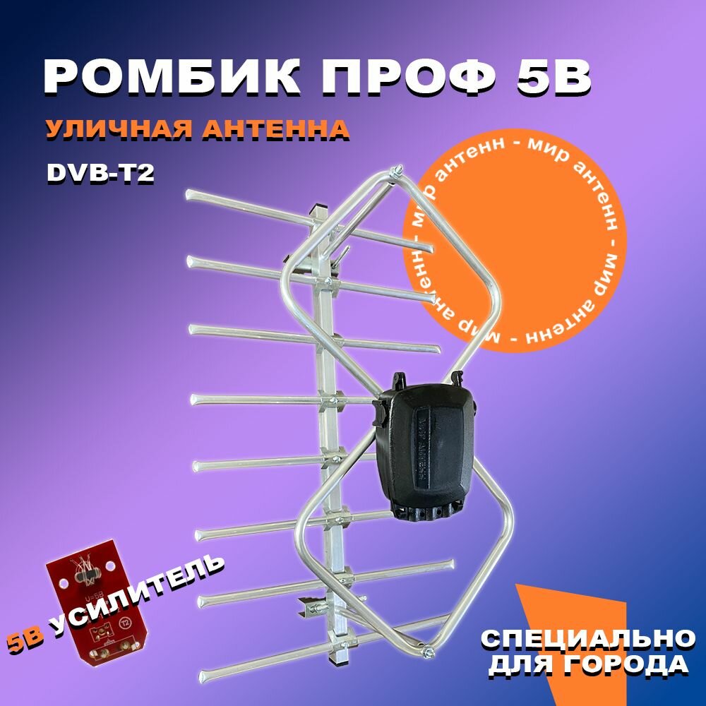 Наружная активная антенна Рефлектор Ромбик ПРОФ А2 5В, которая подходит для работы с цифровым сигналом DVB-T2 в зонах уверенного и не уверенного приёма.