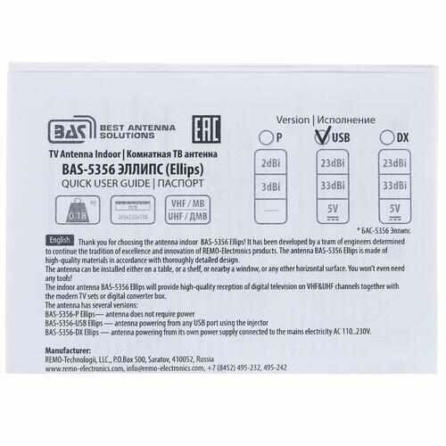 Купить Антенна телевизионная RЕМО BAS-5356-USB-Эллипс активная с доставкой по всей России.