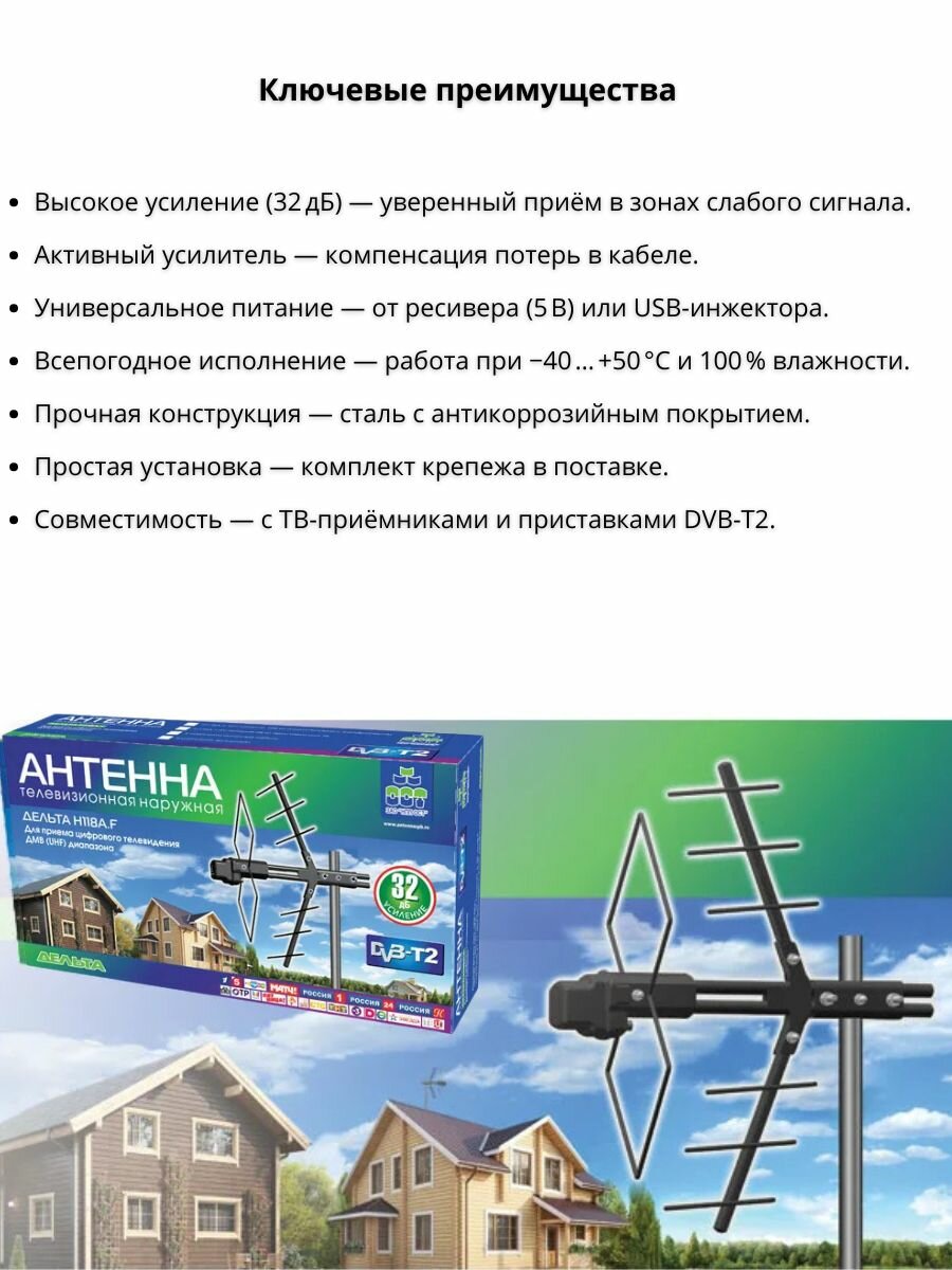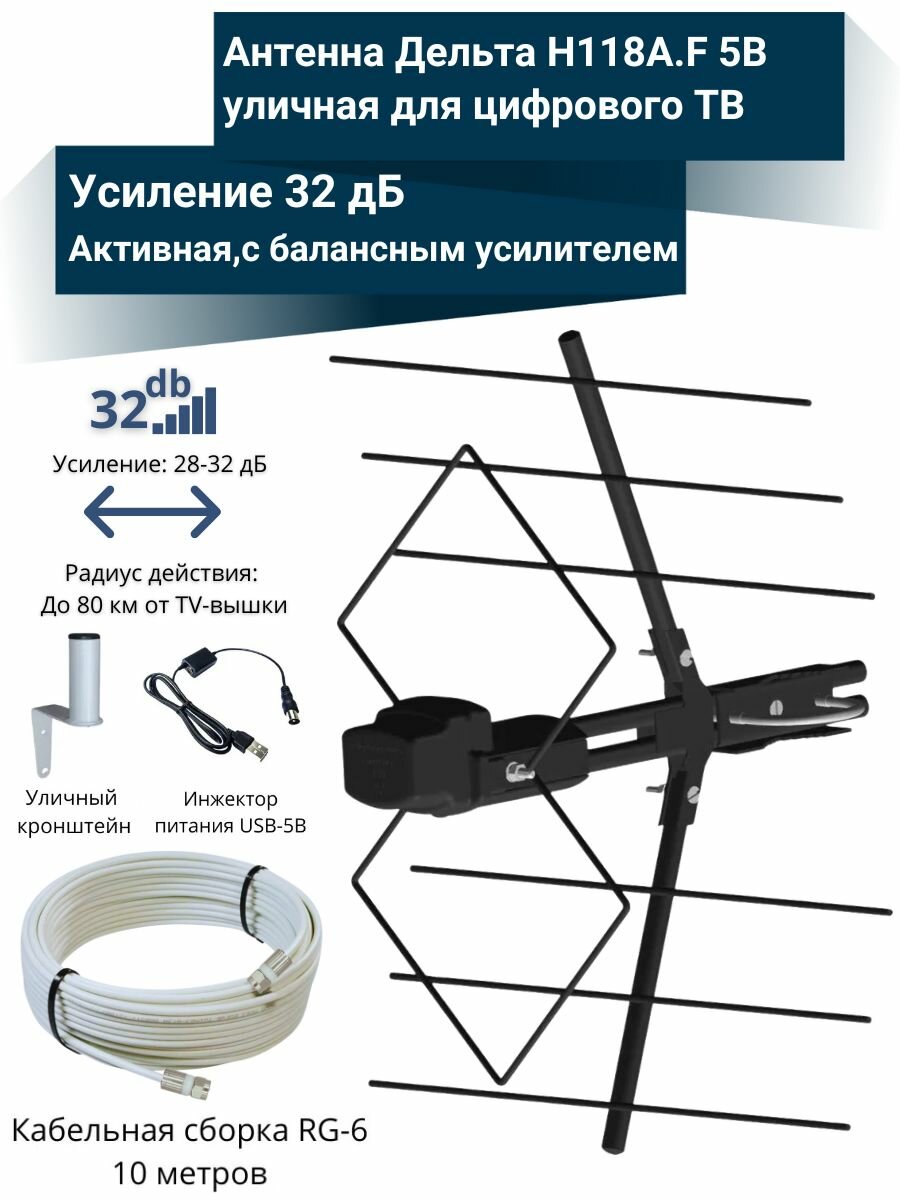 Купить Антенна уличная активная для цифрового ТВ с усилителем до 80 км дельта Н118А. F5V с кабельной сборкой 10 м с доставкой по всей России. Антенна уличная активная для цифрового ТВ с усилителем до 80 км дельта Н118А. F5V с кабельной сборкой 10 м: сравнение цен, характеристики, фото, актуальное наличие и цены.