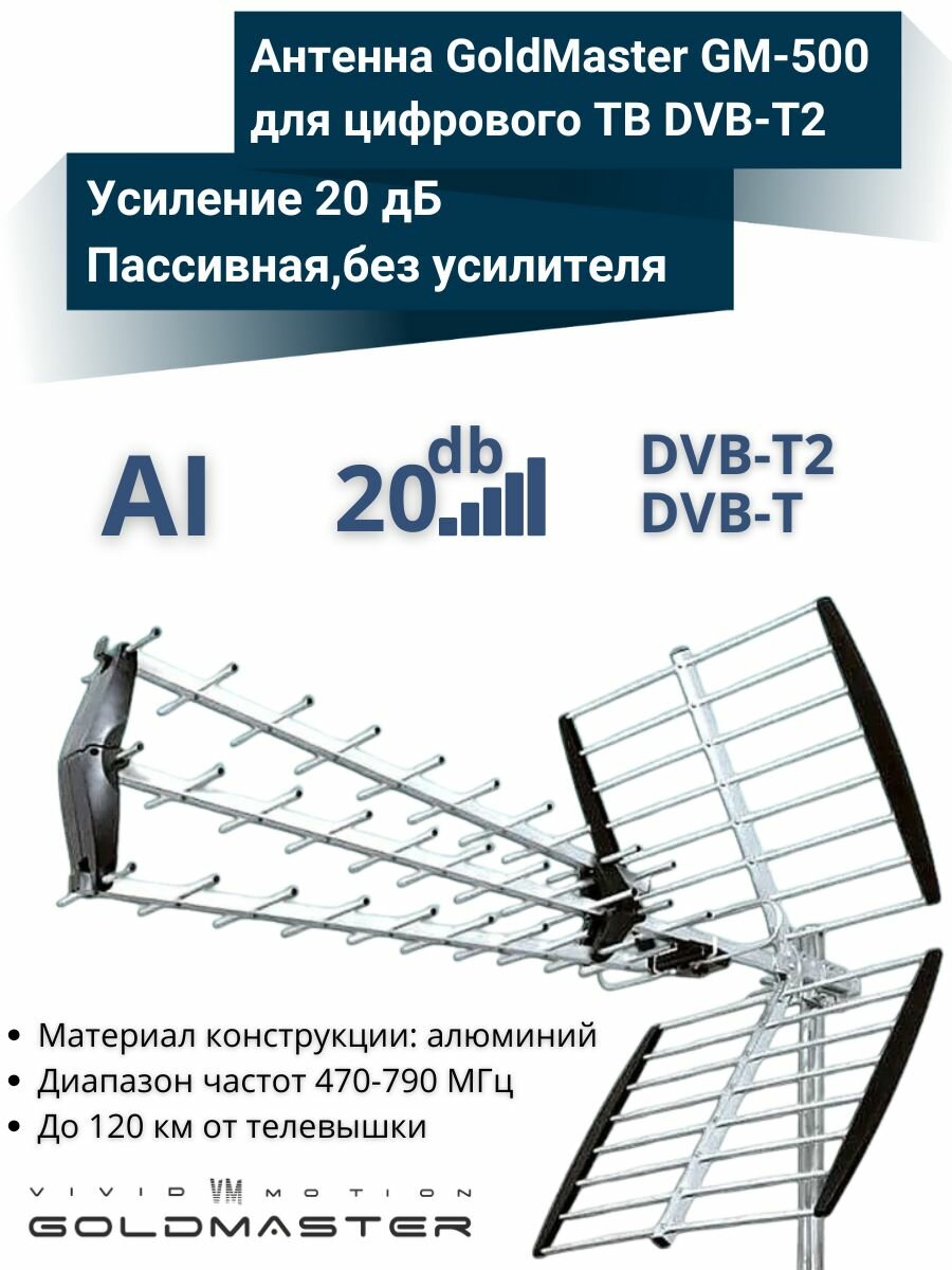 Купить Антенна уличная GoldMaster GM-500 для цифрового ТВ DVB-T2 с доставкой по всей России.
