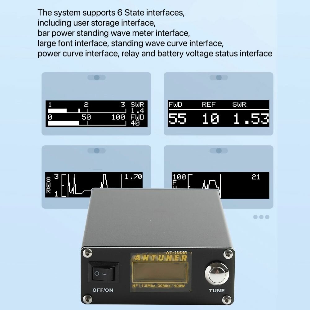 Купить Антенный тюнер 1,8 30 МГц мощностью 100 Вт со встроенным измерителем стоячей волны и измерителем мощности для КВ-радиостанции US DX G1M FT-818 817 IC-705 с доставкой по всей России.