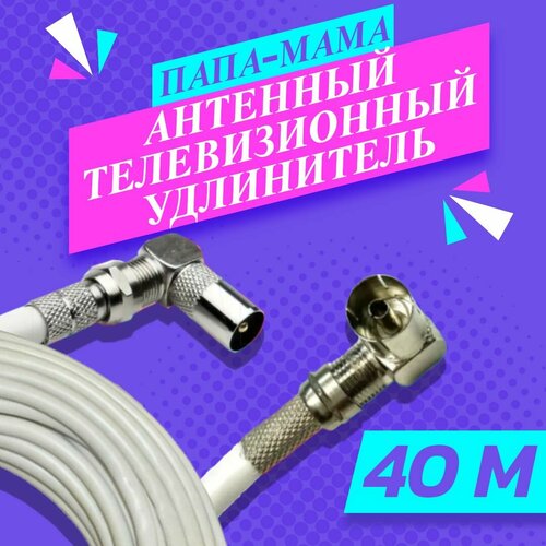 Антенный удлинитель коаксиальный 40 метров угловой. Шнур для телевизора. ТВ штекер — ТВ розетка (ТВ гнездо) «Папа» — «мама». Антенный телевизионный кабель RG-6U: сравнение цен, характеристики, фото, актуальное наличие и цены.