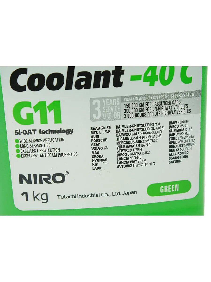Антифриз зеленый -40C 1кг G11 NIRO Coolant TOTACHI