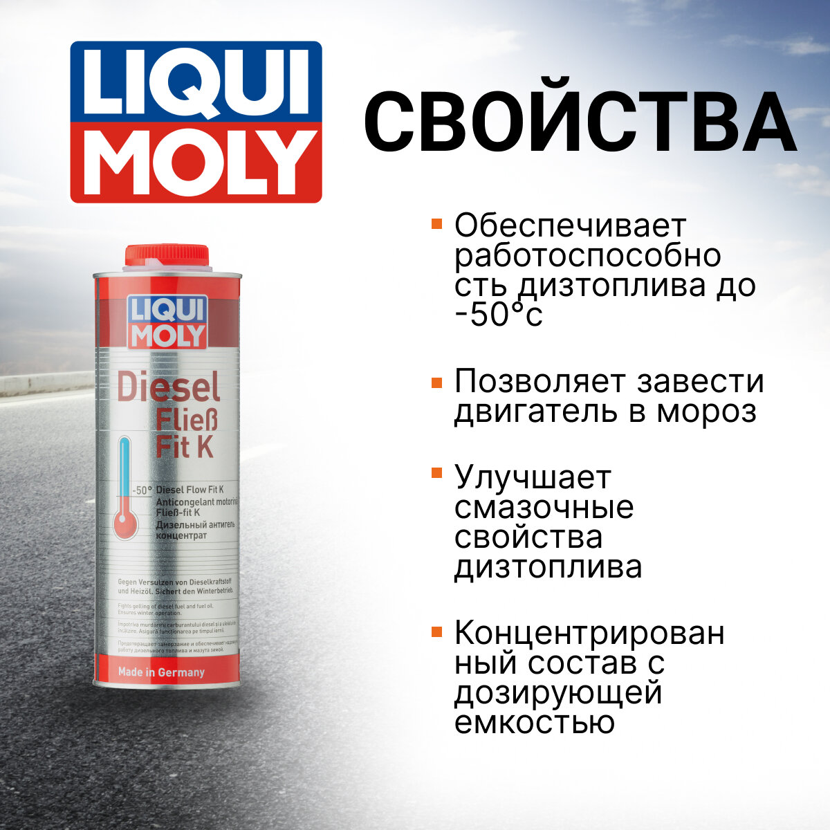 Купить LiquiMoly Diesel Fliess-Fit 1L антигель концентрат дизельный 1мл на 1л топлива LIQUI MOLY арт. 1878 с доставкой по всей России. LiquiMoly Diesel Fliess-Fit 1L антигель концентрат дизельный 1мл на 1л топлива LIQUI MOLY арт. 1878: сравнение цен, характеристики, фото, актуальное наличие и цены.