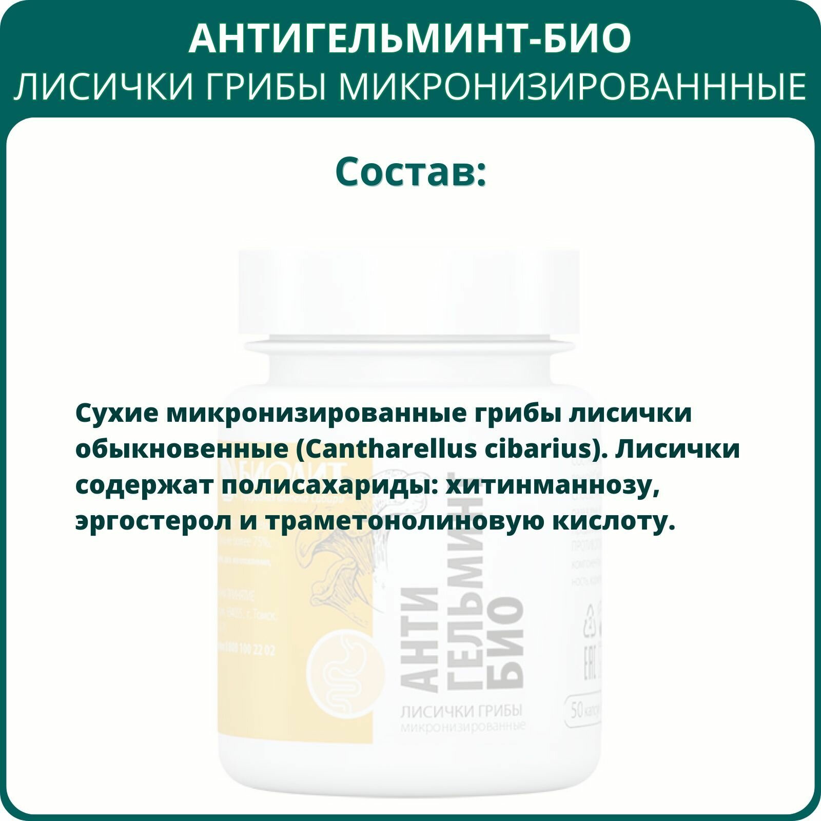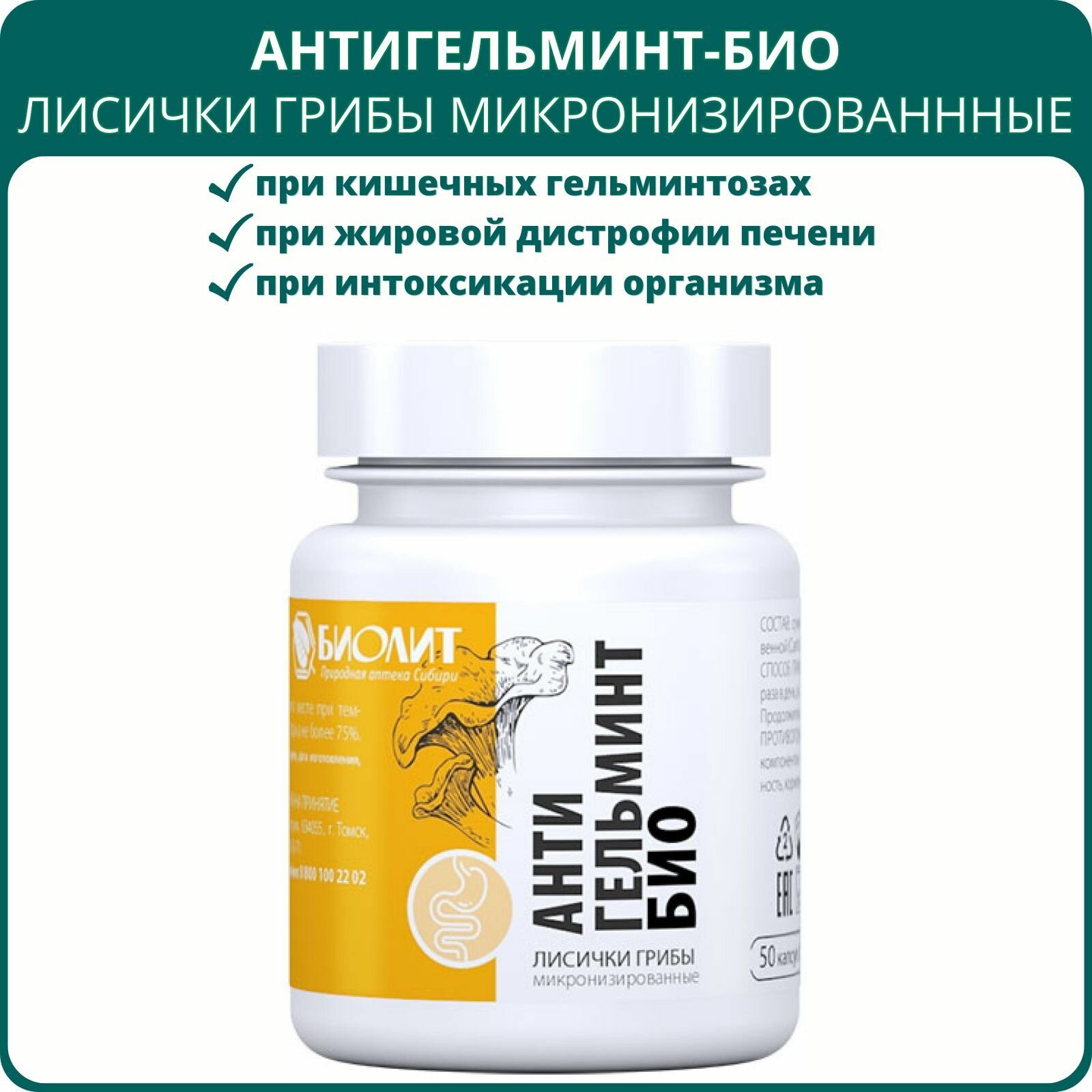 Купить Антигельминт-Био, 50 капсул. Препарат на основе грибов лисичек от паразитов и гельминтов, для восстановления клеток печени с доставкой по всей России. Антигельминт-Био, 50 капсул. Препарат на основе грибов лисичек от паразитов и гельминтов, для восстановления клеток печени: сравнение цен, характеристики, фото, актуальное наличие и цены.