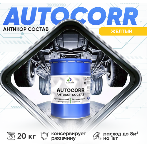 Антикоррозийное покрытие Malare AutoCorr для автомобиля (для днища, арок, кузова), жидкие подкрылки, антигравий для автомобиля, дополнительная шумоизоляция, цвет RAL 1023 желтый, матовая, 20 кг.: сравнение цен, характеристики, фото, актуальное наличие и цены.