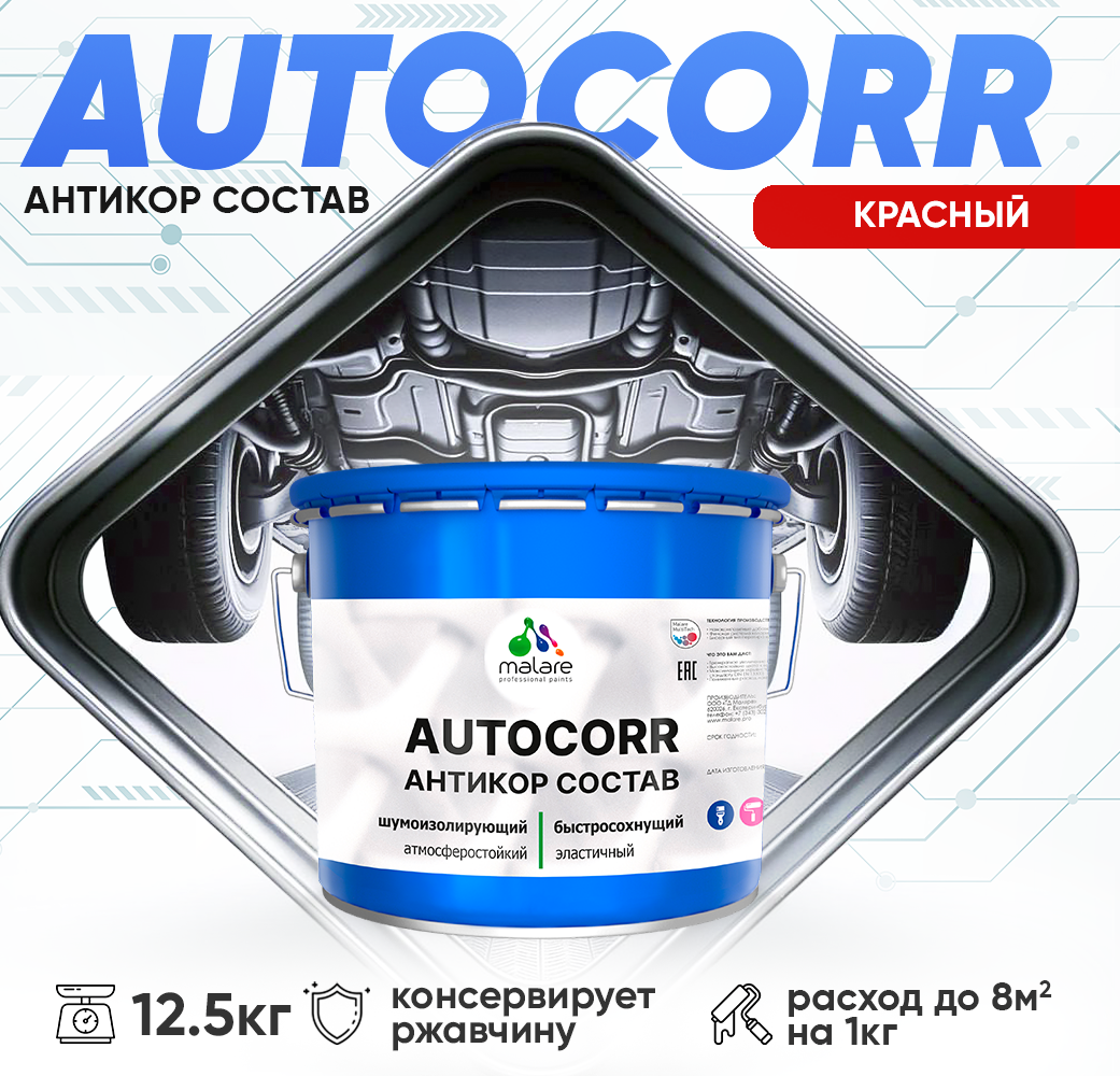 Антикоррозийное покрытие Malare AutoCorr для автомобиля (для днища, арок, кузова), жидкие подкрылки, антигравий для автомобиля, дополнительная шумоизоляция, цвет RAL 3020 красный, матовая, 12,5 кг.: сравнение цен, характеристики, фото, актуальное наличие и цены.