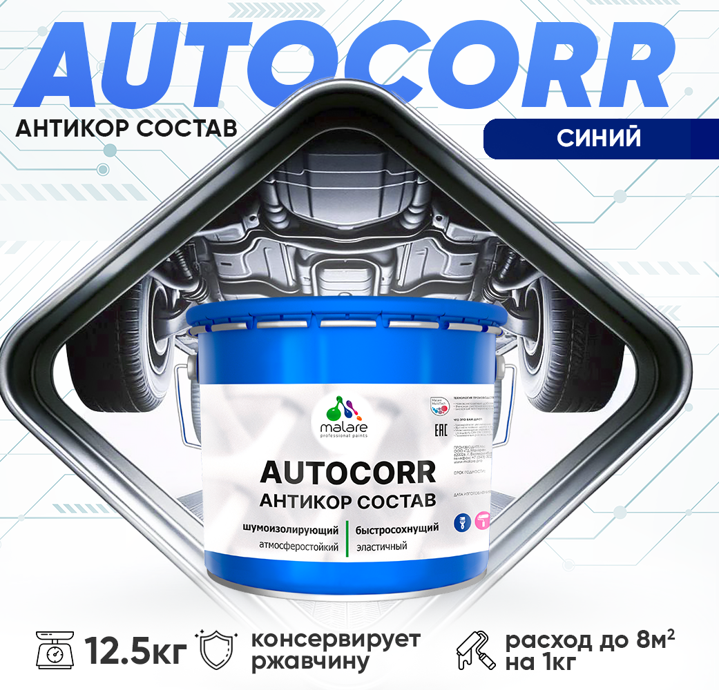 Антикоррозийное покрытие Malare AutoCorr для автомобиля (для днища, арок, кузова), жидкие подкрылки, антигравий для автомобиля, дополнительная шумоизоляция, цвет RAL 5005 синий, матовая, 12,5 кг.: сравнение цен, характеристики, фото, актуальное наличие и цены.
