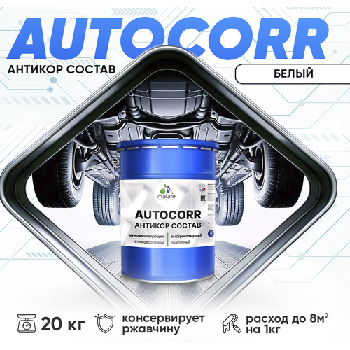 Антикоррозийное покрытие Malare AutoCorr для автомобиля (для днища, арок, кузова), жидкие подкрылки, антигравий для автомобиля, дополнительная шумоизоляция, цвет RAL 9003 белый, матовая, 20 кг.: сравнение цен, характеристики, фото, актуальное наличие и цены.