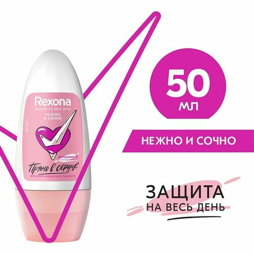 Дезодорант-антиперспирант Rexona Нежно и сочно 50мл – стильный шариковый антиперспирант с мягкой формулой, обогащенной витамином Е. Рекомендован к использованию с 14 лет. Он обеспечит надежную защиту от пота и запаха на 48 часов, а также позаботится о нежной коже подмышек и порадует изумительным игривым ароматом с фруктово-ягодными нотками. Не содержит спирта и парабенов. Не оставляет следов на одежде. Просто проведите шариком по чистой и сухой коже подмышек – и наслаждайтесь невероятной свежестью и комфортом! Компактный флакон можно взять с собой в спортзал или в дорогу, ведь он не займет много места в сумочке или рюкзаке. Внимание: средство нельзя наносить на поврежденную кожу.