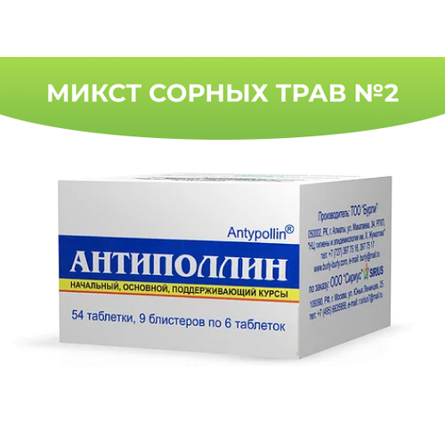 Антиполлин Микст сорных трав №2 (полынь горькая, полынь обыкновенная, амброзия полыннолистная, циклахена дурнишниколистная) 54 таблетки: сравнение цен, характеристики, фото, актуальное наличие и цены.