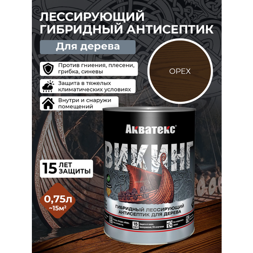 Купить Антисептик для дерева викинг Акватекс биоцидная пропитка гибридная лессирующая 0,75 л орех с доставкой по всей России.