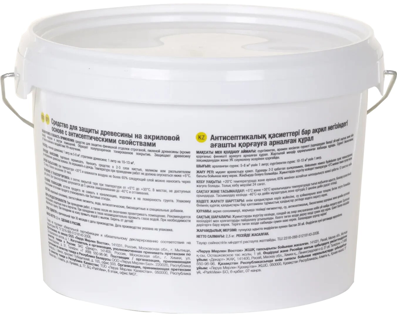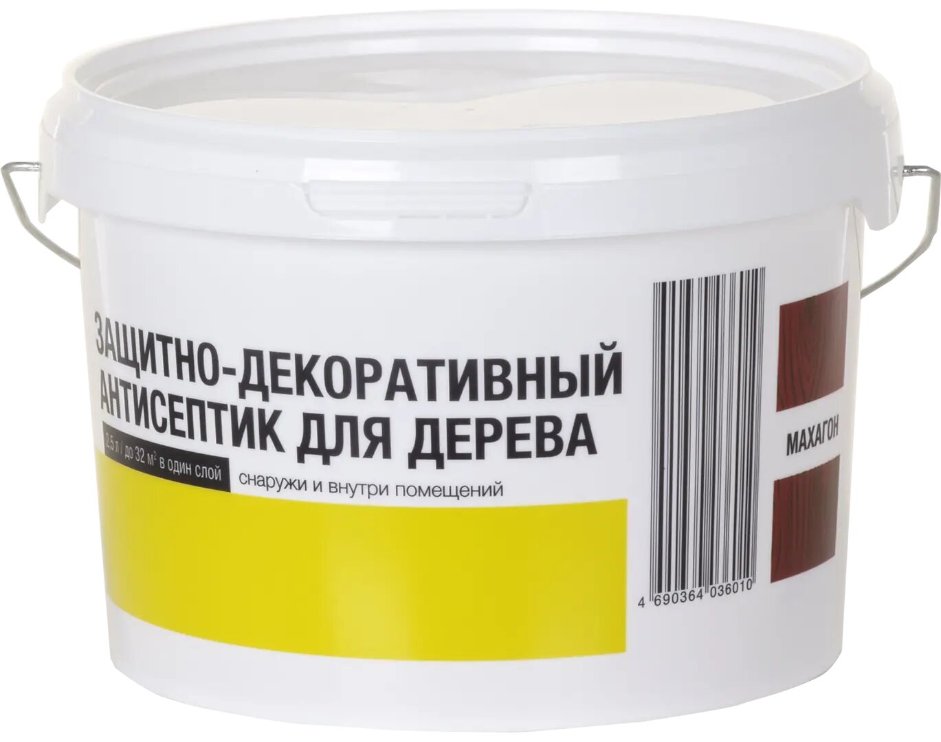Антисептик матовый махагон 2.5 л - акриловый защитно-декоративный антисептический состав для дерева. Применяется для защитной финишной отделки строганой, пиленой и бревенчатой древесины. Образует полупрозрачное тонированное покрытие. Защищает древесину от биопоражения и воздействия УФ-излучения. Особенности - Для отделки древесины снаружи и внутри помещений. - На основе акриловой дисперсии. - Практически не пахнет. - Содержит современные биозащитные добавки.