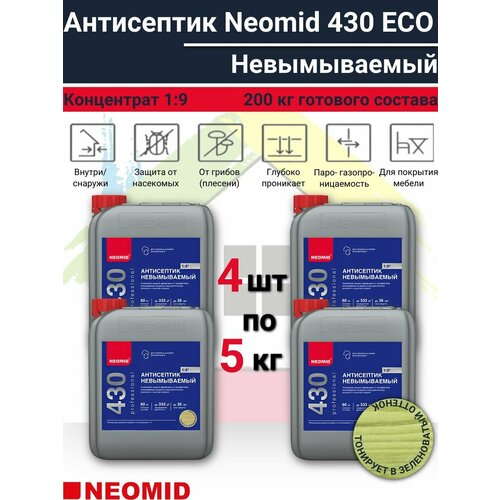 Консервирующий невымываемый антисептик для наружных и внутренних работ. Обеспечивает максимальную защиту древесины различных пород в тяжелых условиях эксплуатации, в том числе при длительном контакте с грунтом и влагой. защищает от поражения дереворазрушающими и деревоокрашивающими плесневыми грибами, водорослями, мхами, а также насекомыми-древоточцами на срок до 35 лет. максимальная защита достигается путем глубинной пропитки применяется для обработки причалов, террас, беседок, фундаментов, черных полов, каркасов стен, балок, перекладин, стропил, столбов и других деревянных изделий и конструкций. химически связывается с древесиной. не требует обязательной окраски ЛКМ может использоваться в качестве защитной биоцидной пропитки перед окрашиванием внимание: Придает древесине зеленоватый цвет, который со временем может измениться до серого или бурого. Применение: Защитить поверхности, не требующие обработки, от попадания средства. Очистить обрабатываемую поверхность от грязи, пыли, любых видов покрытий. Древесину, пораженную синевой, обработать отбеливателем NEOMID 500. Перед применением антисептика для древесины NEOMID 430 Eco, состав перемешать, затем развести водой в соотношении 1:9. Обработку древесины можно проводить двумя способами:1. Нанесение рабочего раствора (с помощью кисти, валика, любого разбрызгивающего устройства) в 2-3 слоя с промежуточными сушками по 20-30 минут.2. Погружение материала в рабочий раствор на 2-5 минут. Работы проводить в хорошо проветриваемых помещениях или на открытом воздухе при температуре окружающей среды и обрабатываемой поверхности не ниже +5°С.Обработанную древесину следует защитить от попадания воды, атмосферных осадков до полного высыхания (не менее 48 часов при температуре 16-20°С и относительной влажности воздуха 60%). Фиксация средства в древесине происходит в течение 15 дней, в этот период древесину можно использовать для строительных работ, но рекомендуется защитить от попадания воды, атмосферных осадков и контакта с грунтом. Расход: Расход средства для струганой древесины – 150-250 г/м ,для пиленой древесины – 250-400 г/м. меры предосторожности: Антисептик для дерева NEOMID 430 Eco не совместим с защитными составами на основе хрома. Следует избегать контакта концентрата NEOMID 430 Eco с медными сплавами. При работе с NEOMID 430 Eco использовать индивидуальные средства защиты: защитную одежду, перчатки, респиратор, очки. При попадании на кожу или в глаза – промыть большим количеством воды. При необходимости обратиться к врачу. Хранение И транспортировка: Транспортировать отдельно от пищевых продуктов. Беречь от детей. Хранить в проветриваемом помещении в плотно закрытой заводской таре при температуре от +5°С до +40°С. Гарантийный срок хранения 18 месяцев. Средство сохраняет свои свойства после 5 циклов замораживания-размораживания. Пожаровзрывобезопасен. Утилизация согласно СанПиН 2.1.7.1322-03. Состав: Вода, синергическая смесь комплексных соединений меди и функциональные добавки. Не содержит соединений мышьяка и хрома. В случае механического повреждения или растрескивания обработанной древесины в процессе эксплуатации необходимо обработать такие участки свежеприготовленным раствором средства.