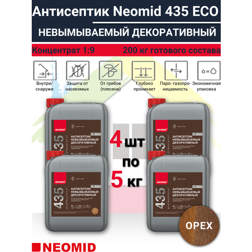 Антисептик NEOMID 435 ECO невымываемый декоративный, цв Орех, 20кг (5кг-4шт) концентрат 1:9 (200л готового раствора): сравнение цен, характеристики, фото, актуальное наличие и цены.